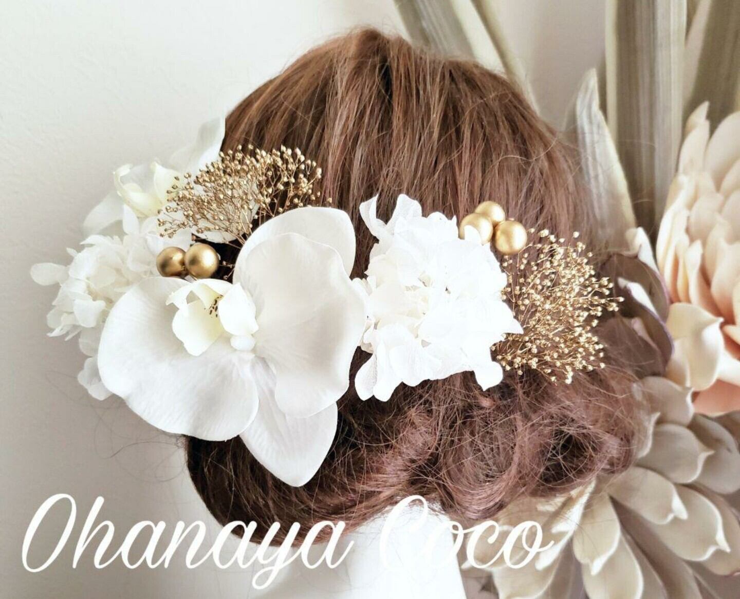 専用 追加あり全11点 胡蝶蘭とゴールドかすみ草の髪飾り8点Set No395
