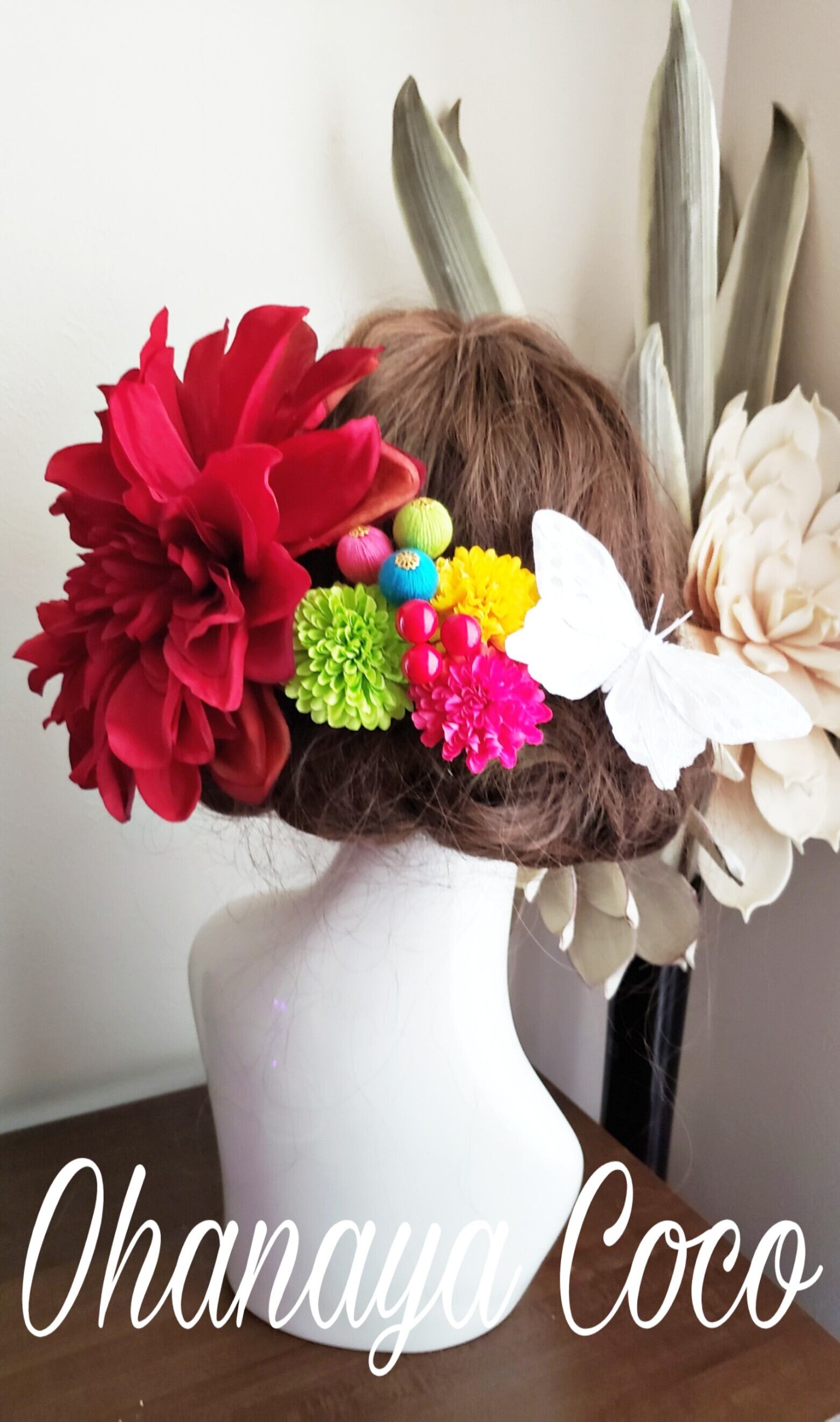 専用 オーダー商品 大きなダリアと蝶々の髪飾り9点Set 20201021イ
