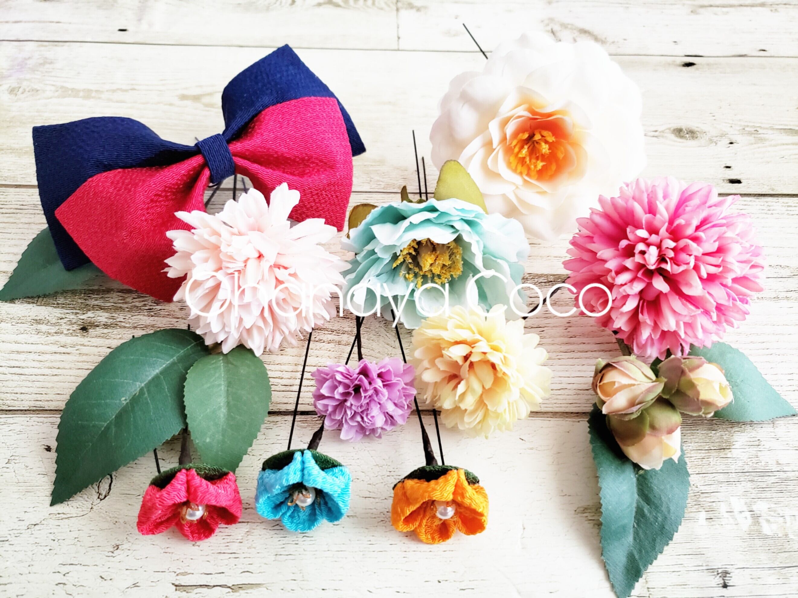 こちらの商品は花姫 白椿の和リボンの髪飾り13点Setです。