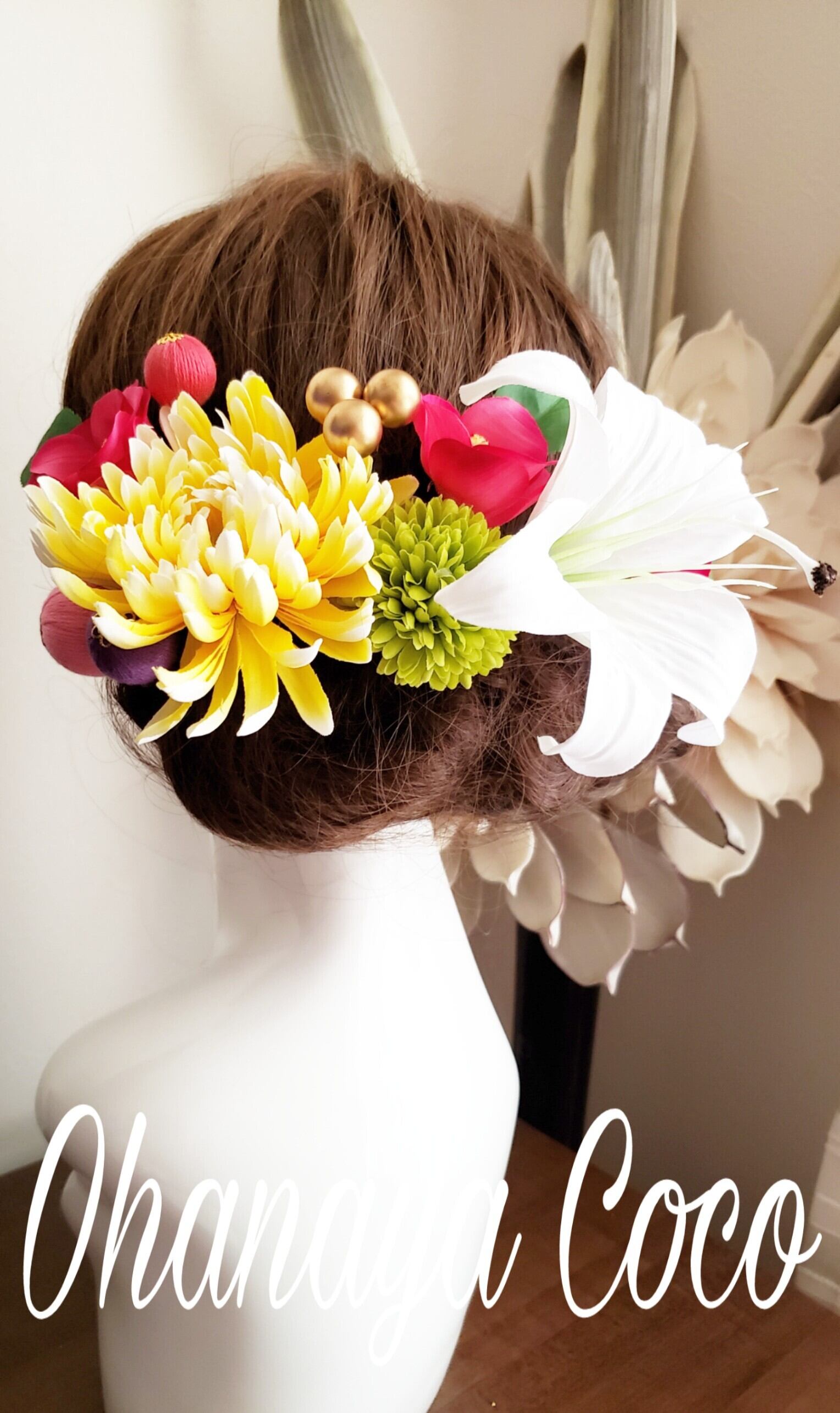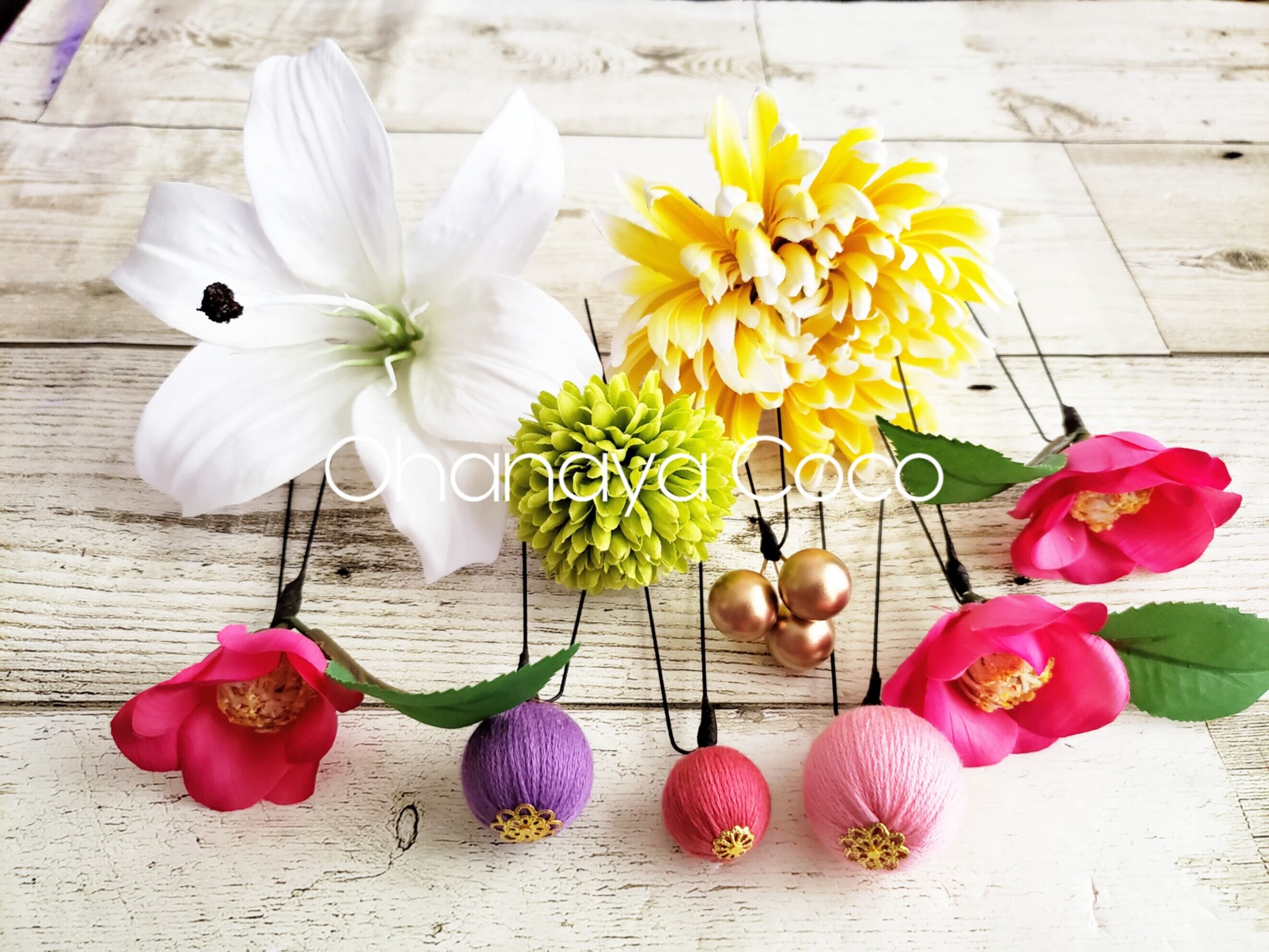 こちらの商品は重ね菊とユリの髪飾り10点Setです。