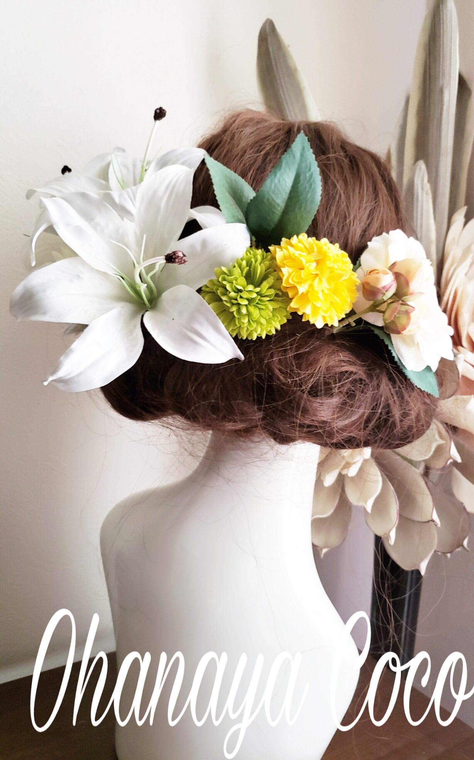 華々 ユリと椿の髪飾り10点Set No779 成人式 結婚式