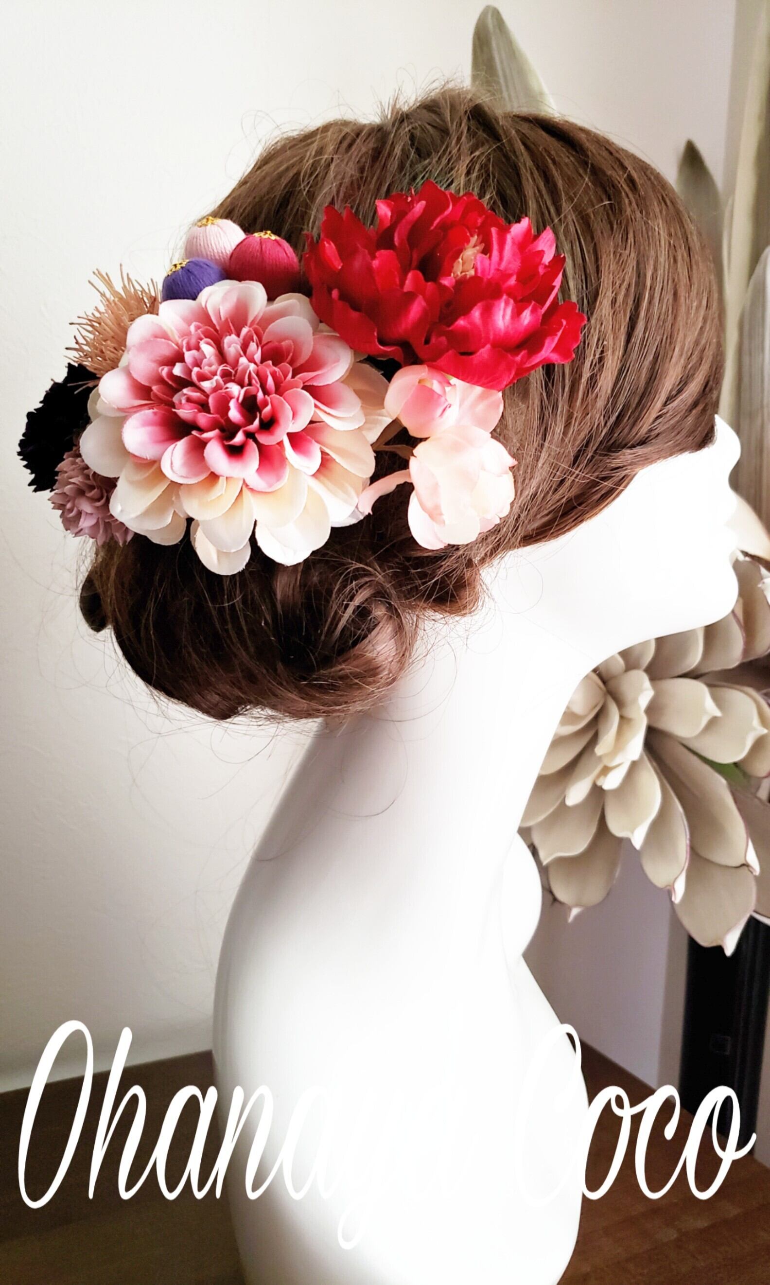 専用 オーダー商品 ダリアと和玉ボールの髪飾り9点Set 20210206Bイ