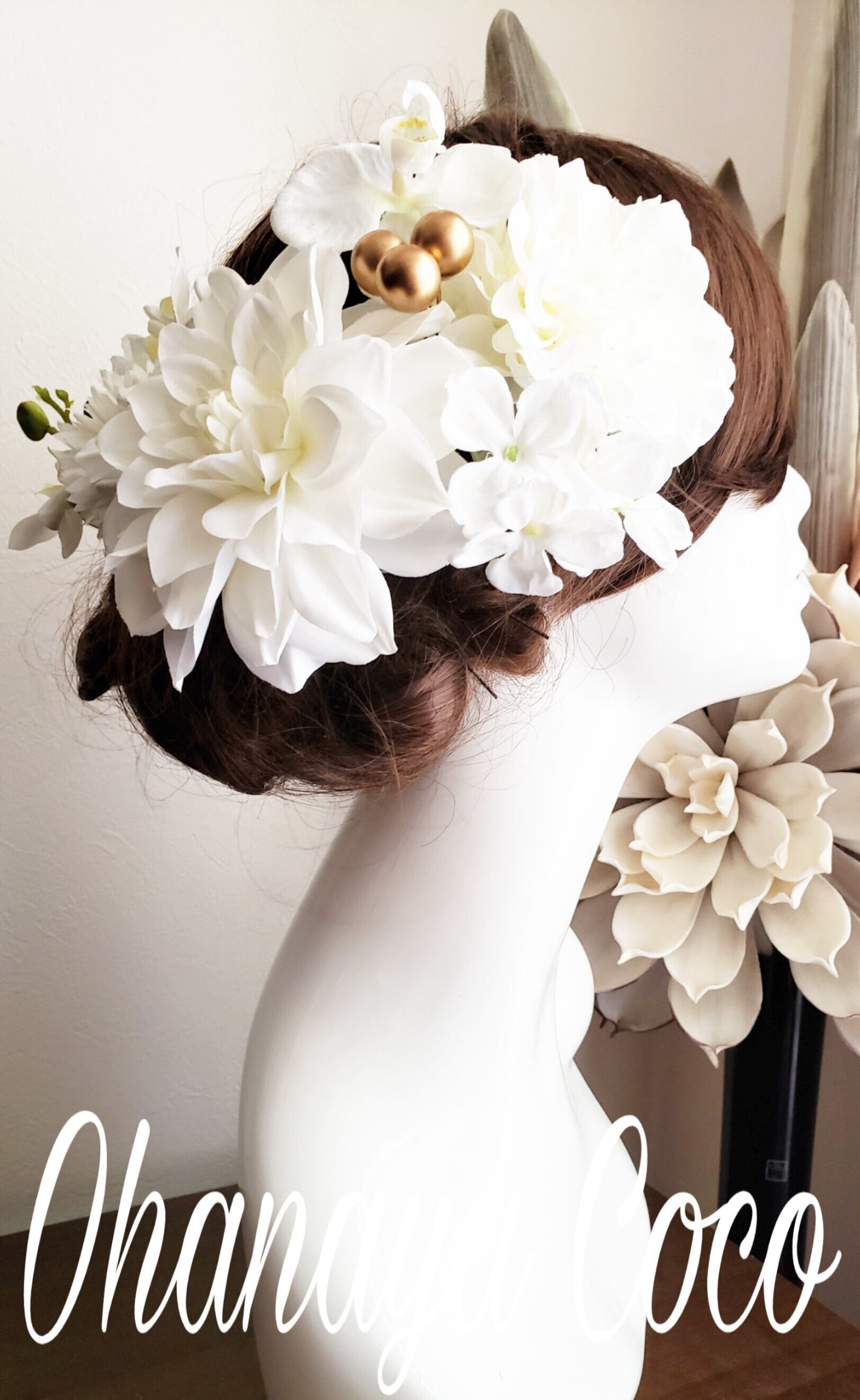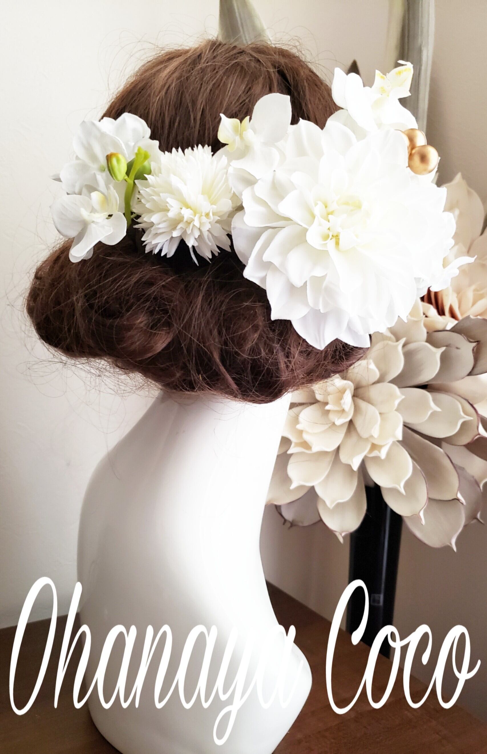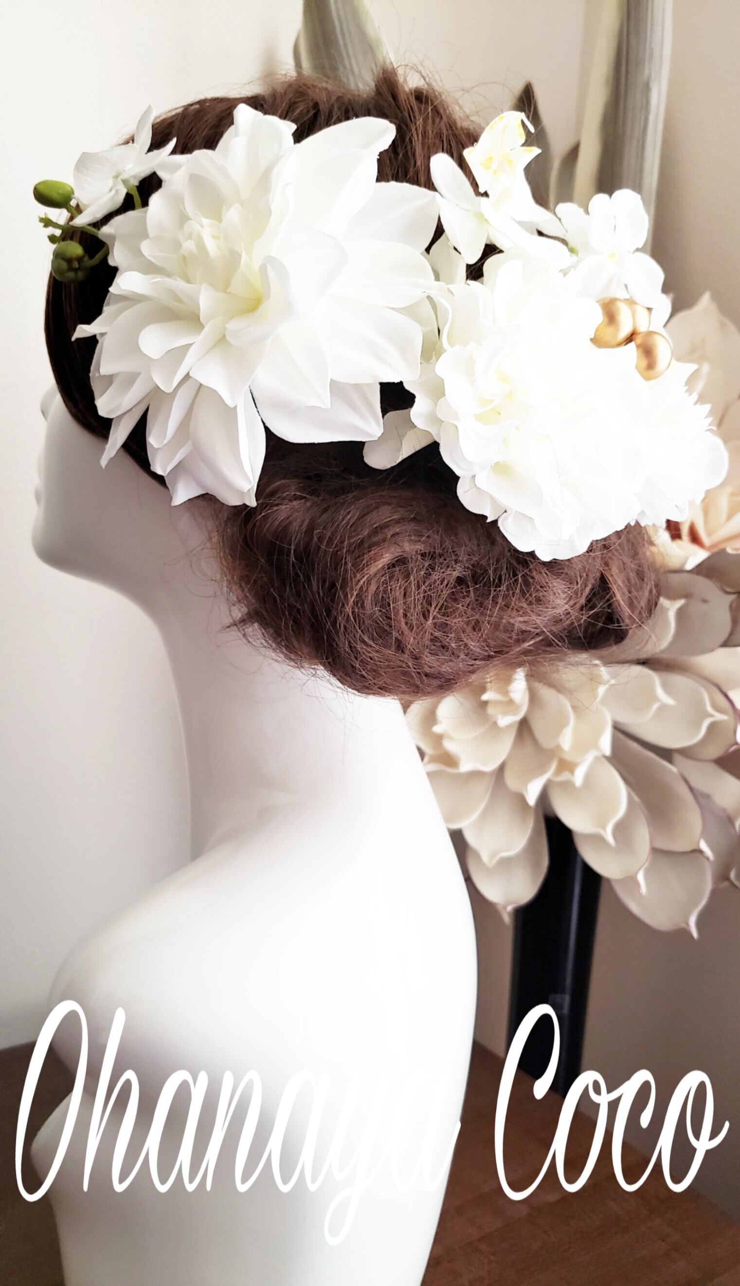 こちらの商品はwhite系ヘッドドレス 胡蝶蘭とダリアの髪飾り9点Setです。
