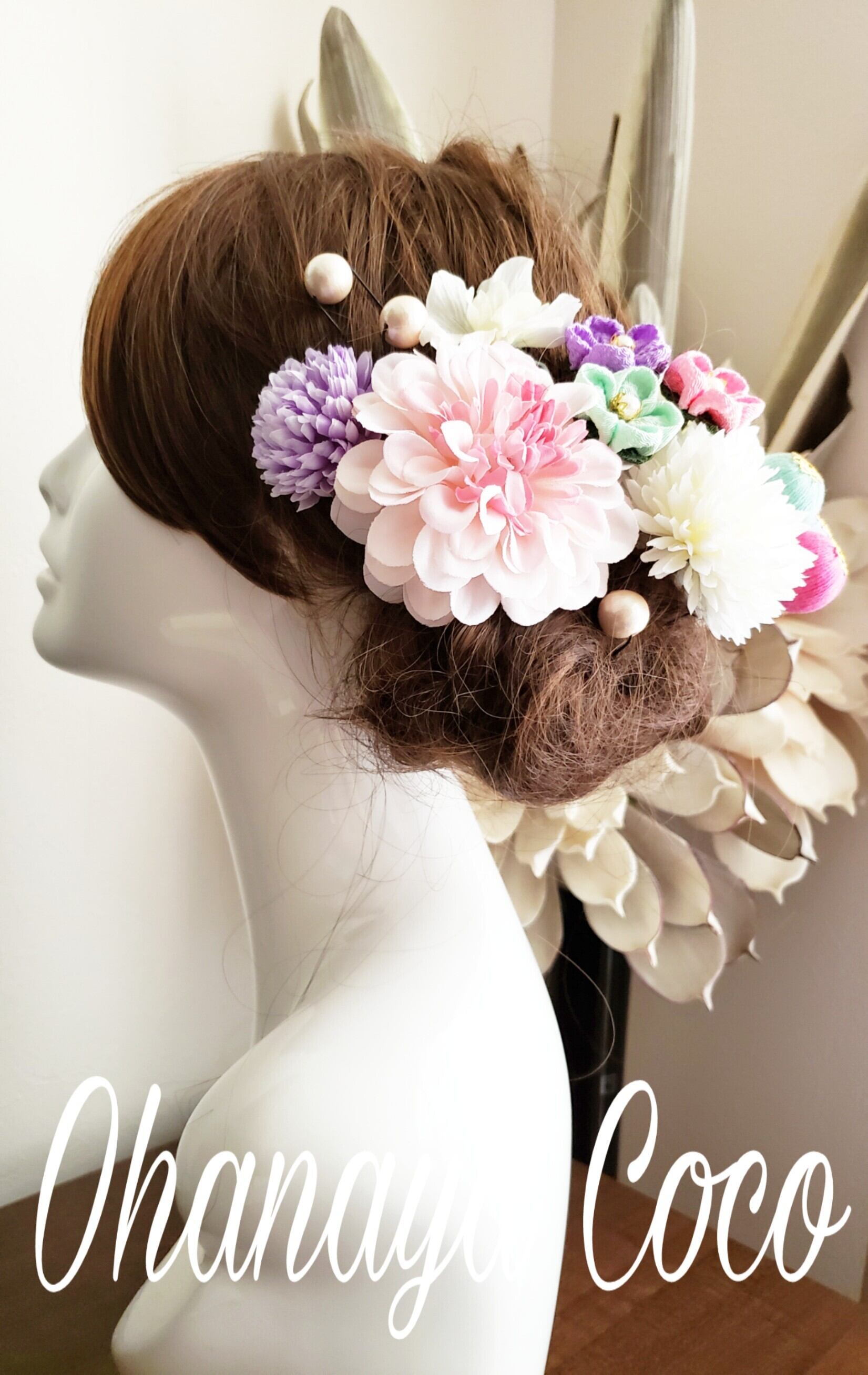 #和装 #造花 #白無垢 #色打掛 #成人式 #白無垢 #成人式 #袴 #卒業式 #大正ロマン #お色直し #髪飾りオーダー #ポンポンマム #七五三 #キュート #和モダン #和風レトロ