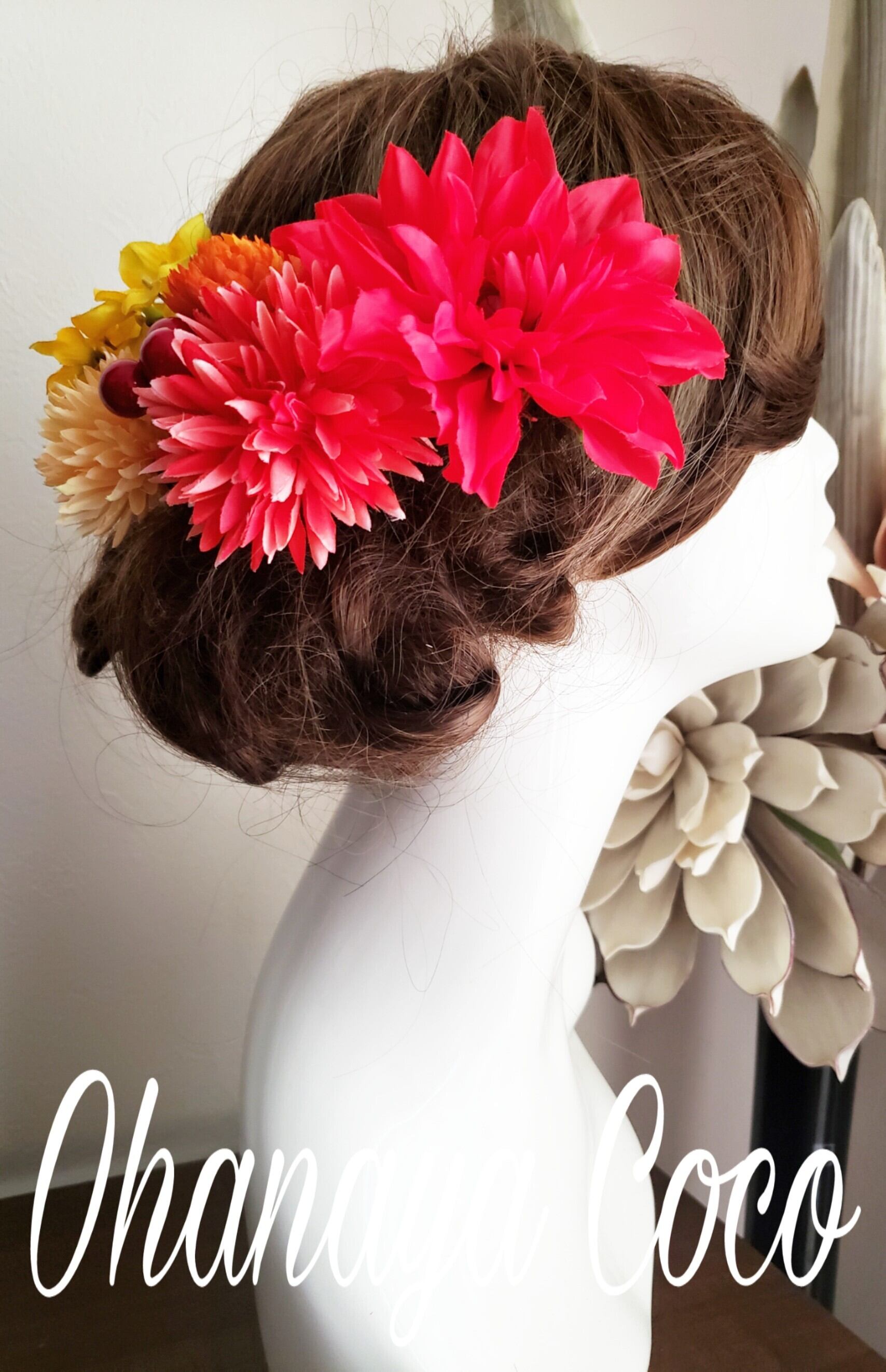 撮影角度などにより大きく見える場合もありますので実際の髪飾りの大きさは記載のサイズをご確認下さいませ。