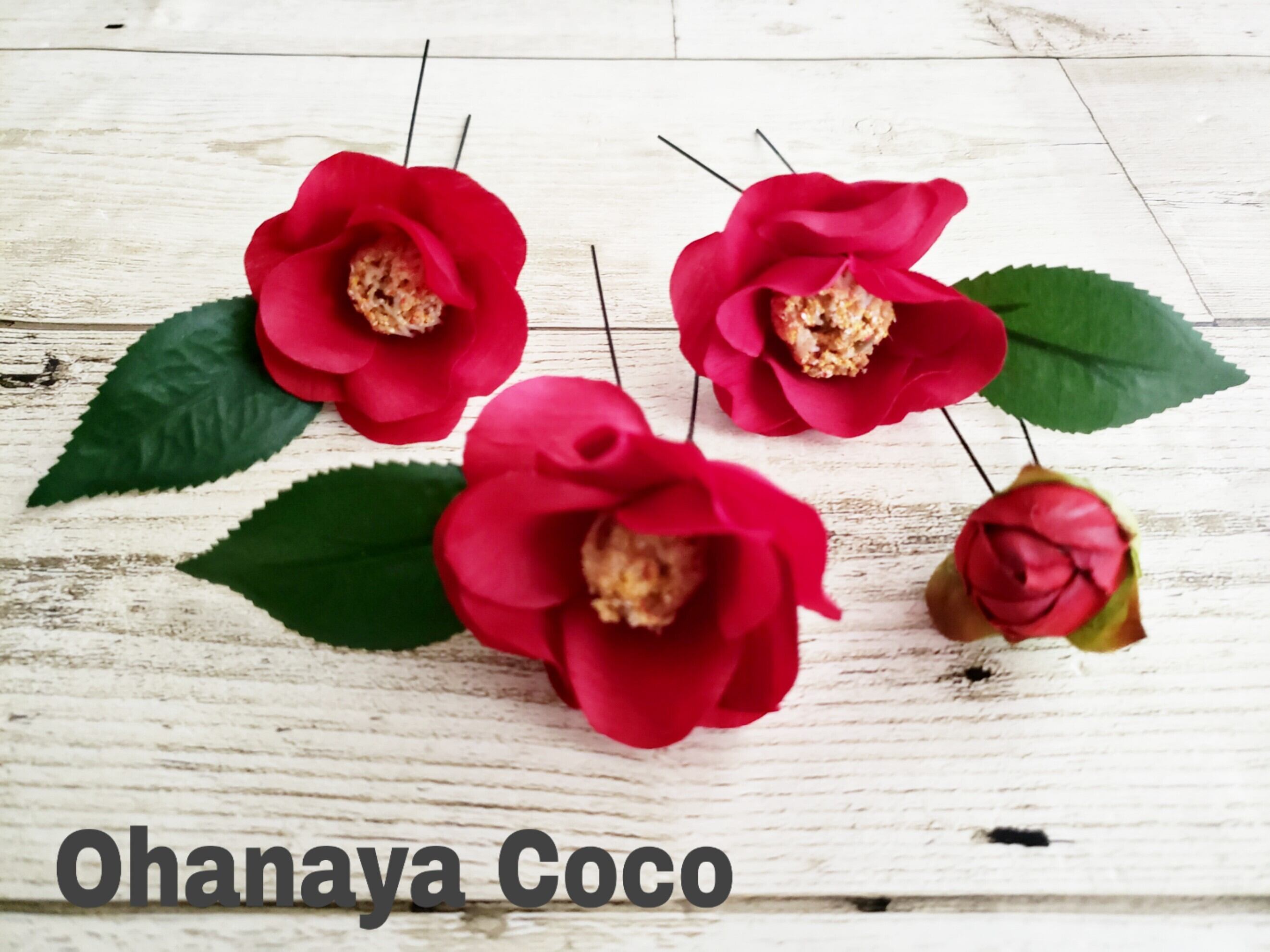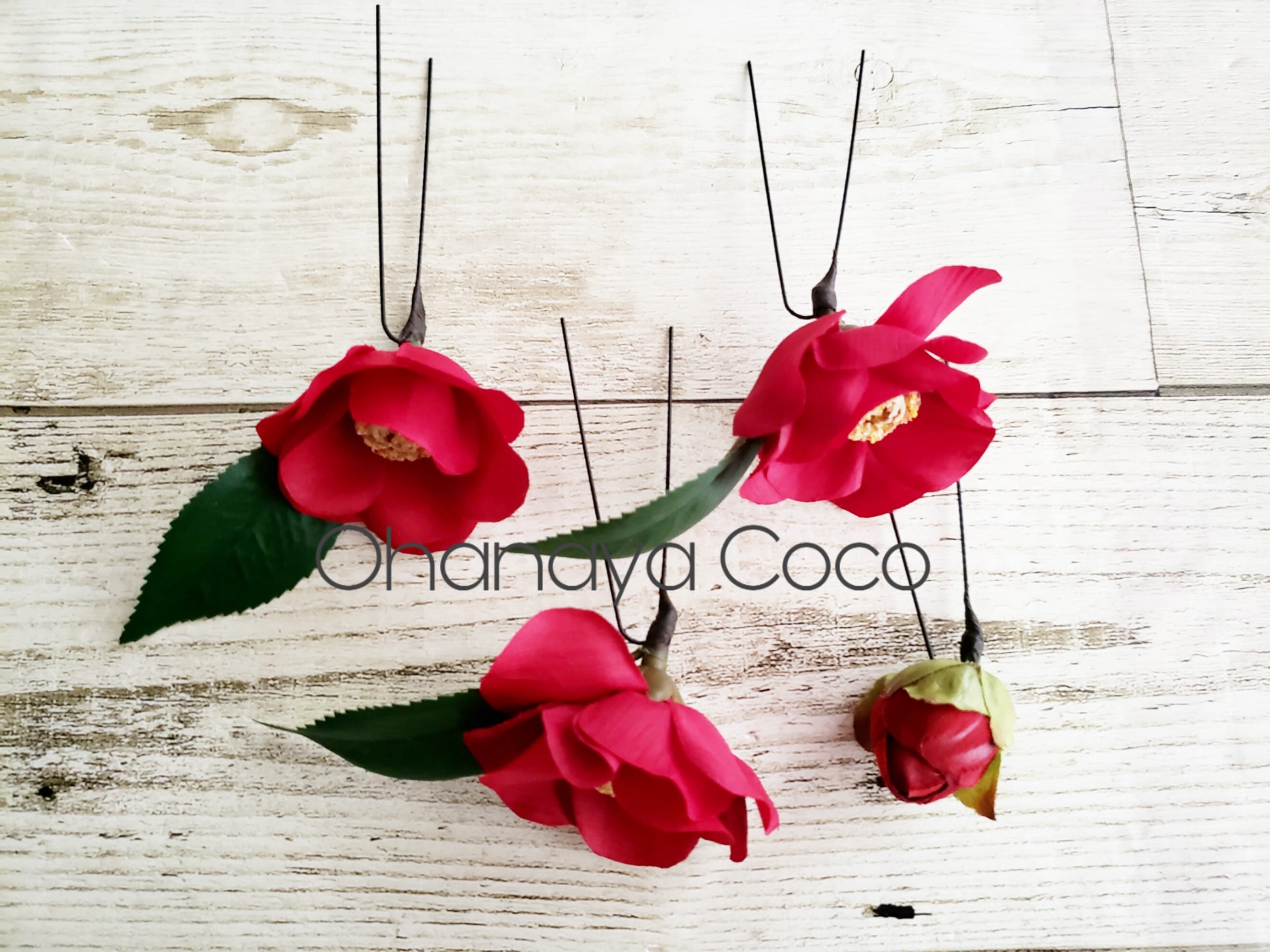 専用 オーダー商品 椿x3 蕾x1の髪飾り4点Set