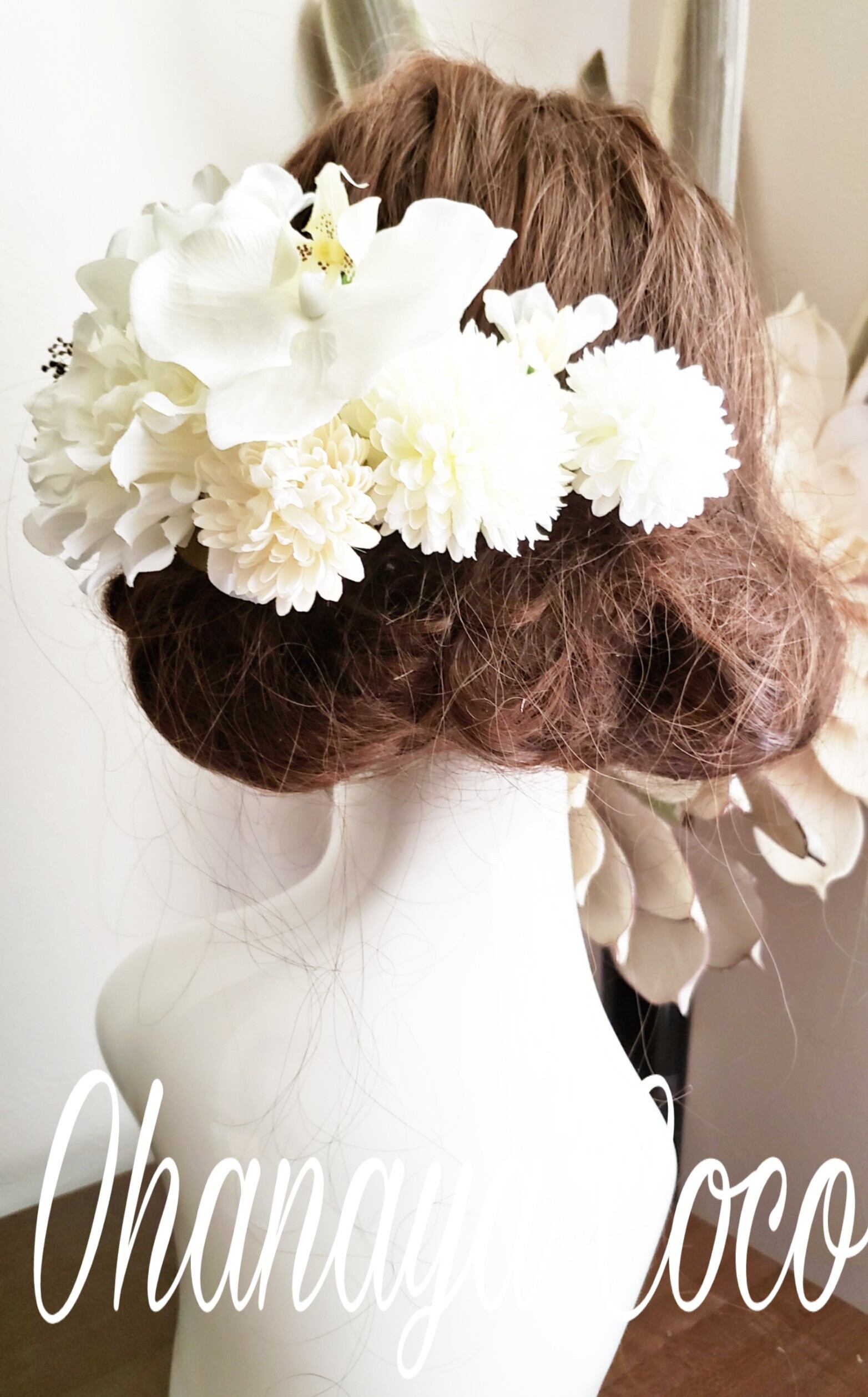 こちらの商品はhirahira胡蝶蘭とwhiteダリアの髪飾り10点Set です。