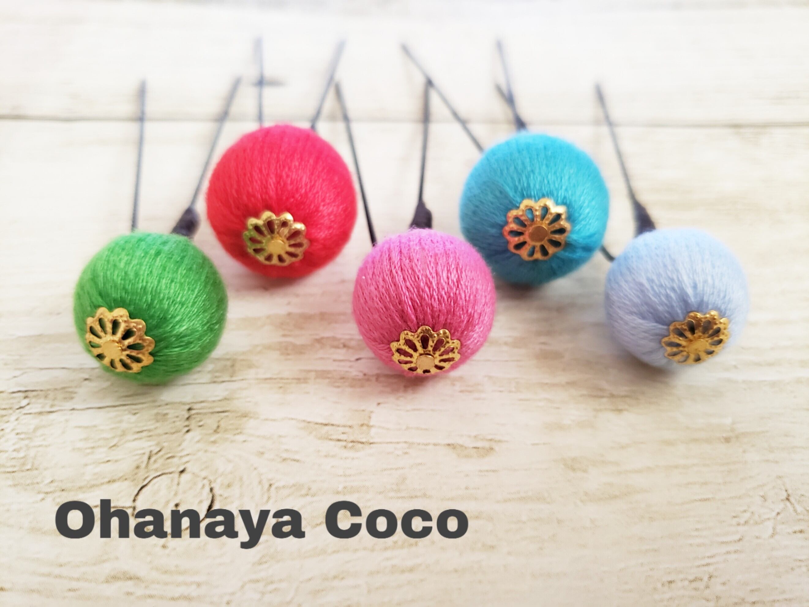 和玉ボールはカラフルな刺繍糸を丁寧に巻き付けて可愛いく仕上げました。
