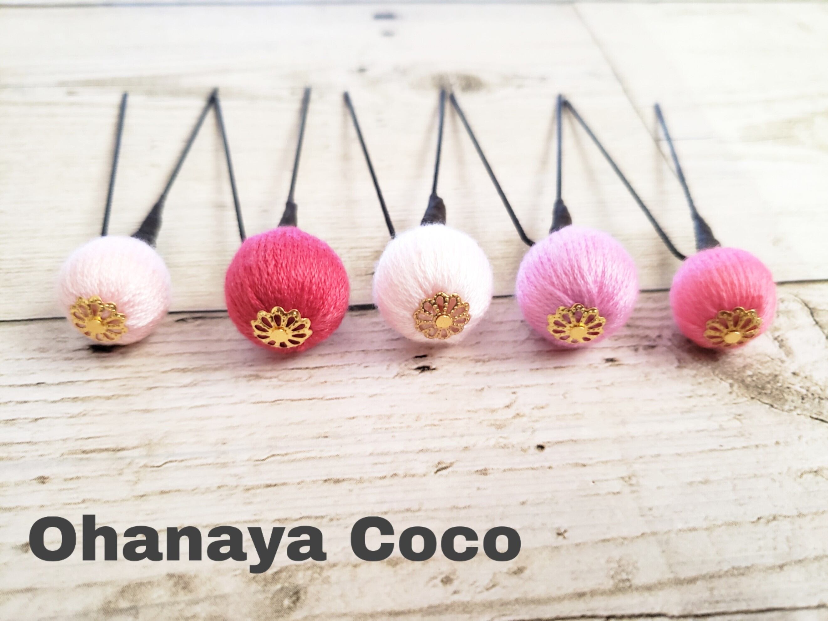 和玉ボールはカラフルな刺繍糸を丁寧に巻き付けて可愛いく仕上げました。