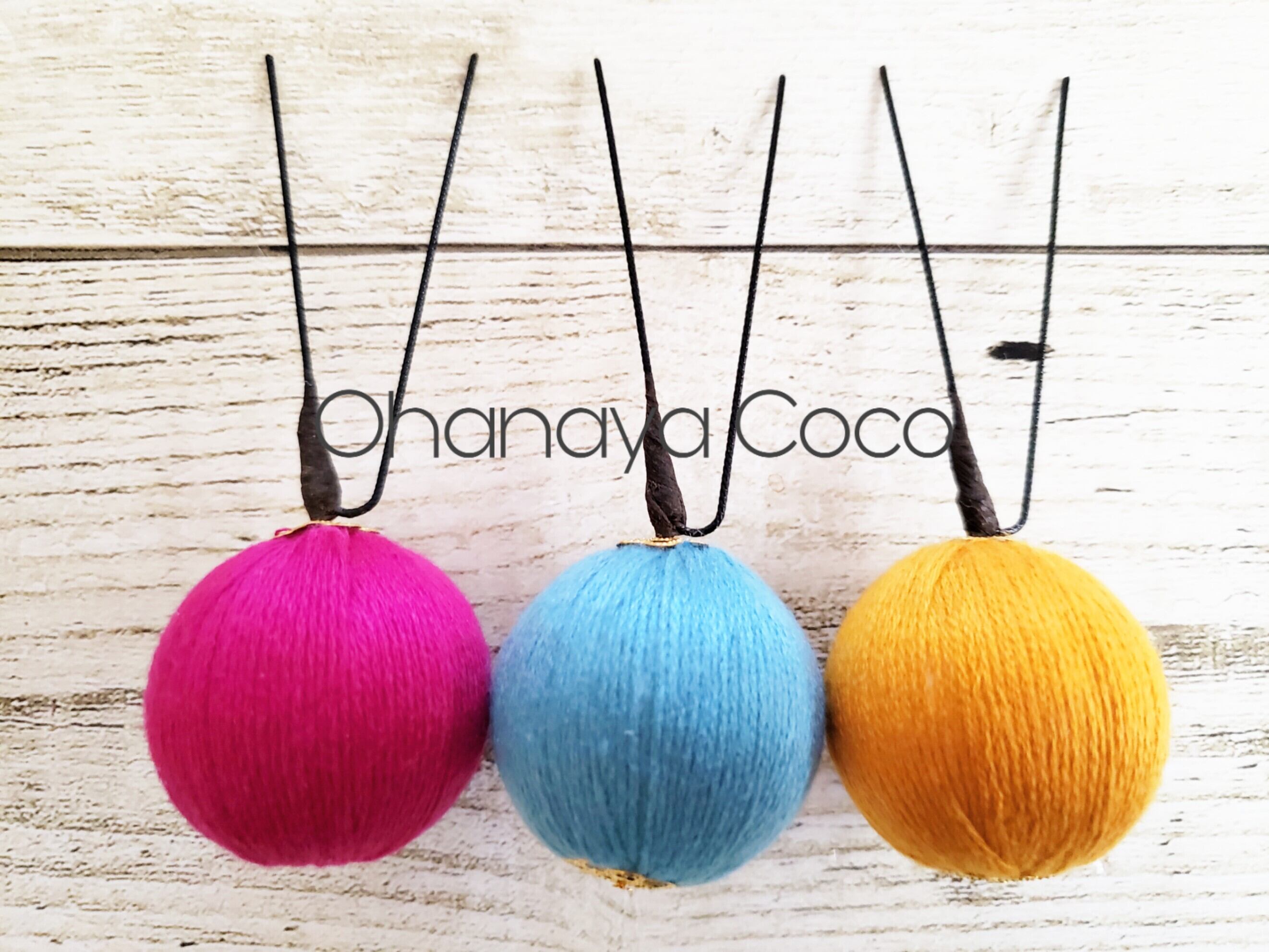 和玉ボールはカラフルな刺繍糸を丁寧に巻き付けて可愛いく仕上げました。