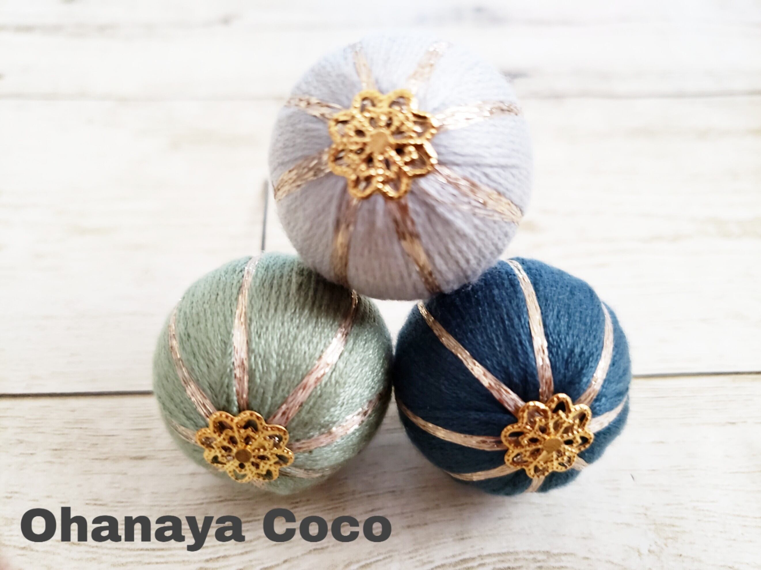 和玉ボールはカラフルな刺繍糸を丁寧に巻き付けて可愛いく仕上げました。