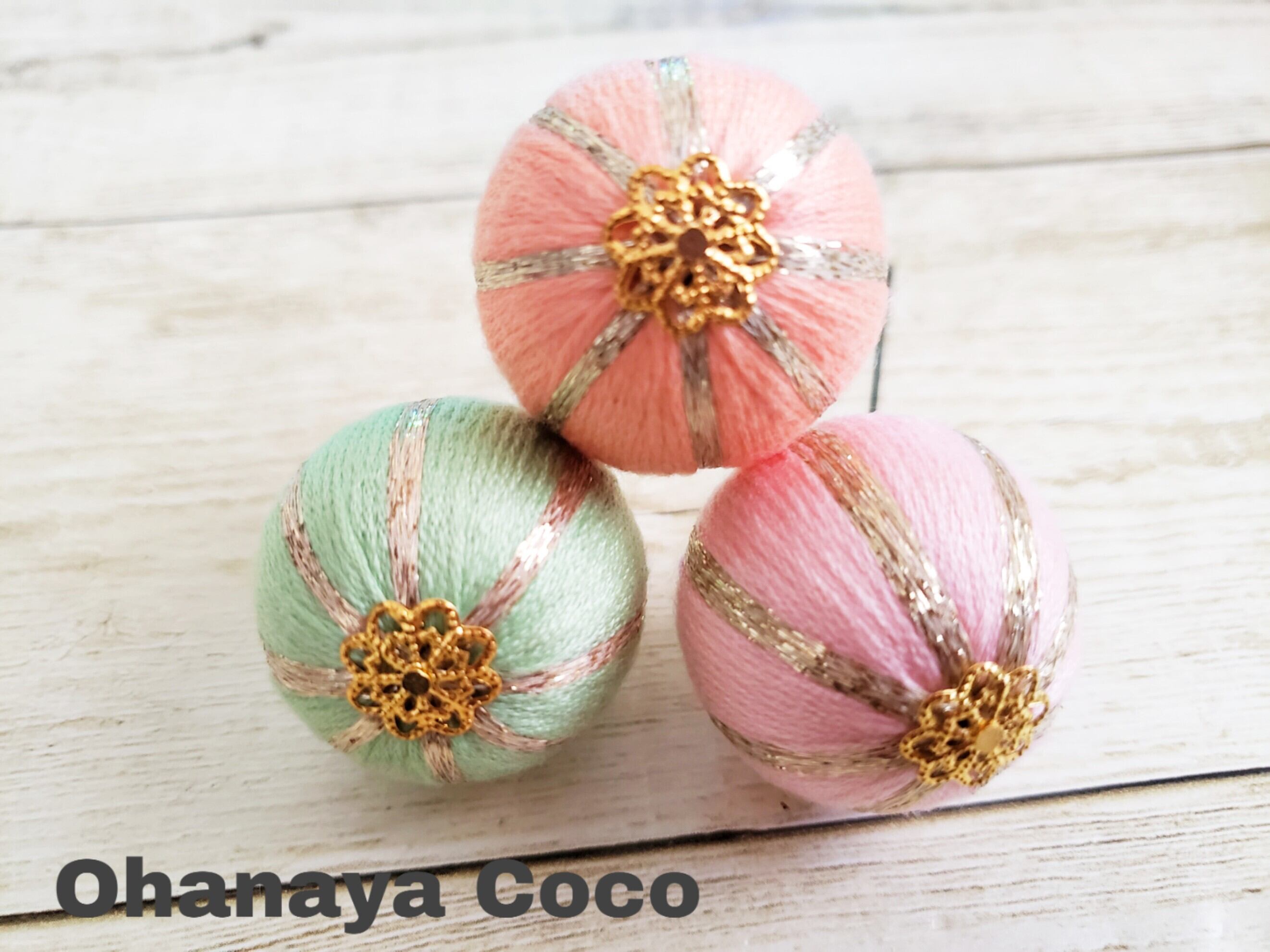 和玉ボールはカラフルな刺繍糸を丁寧に巻き付けて可愛いく仕上げました。
