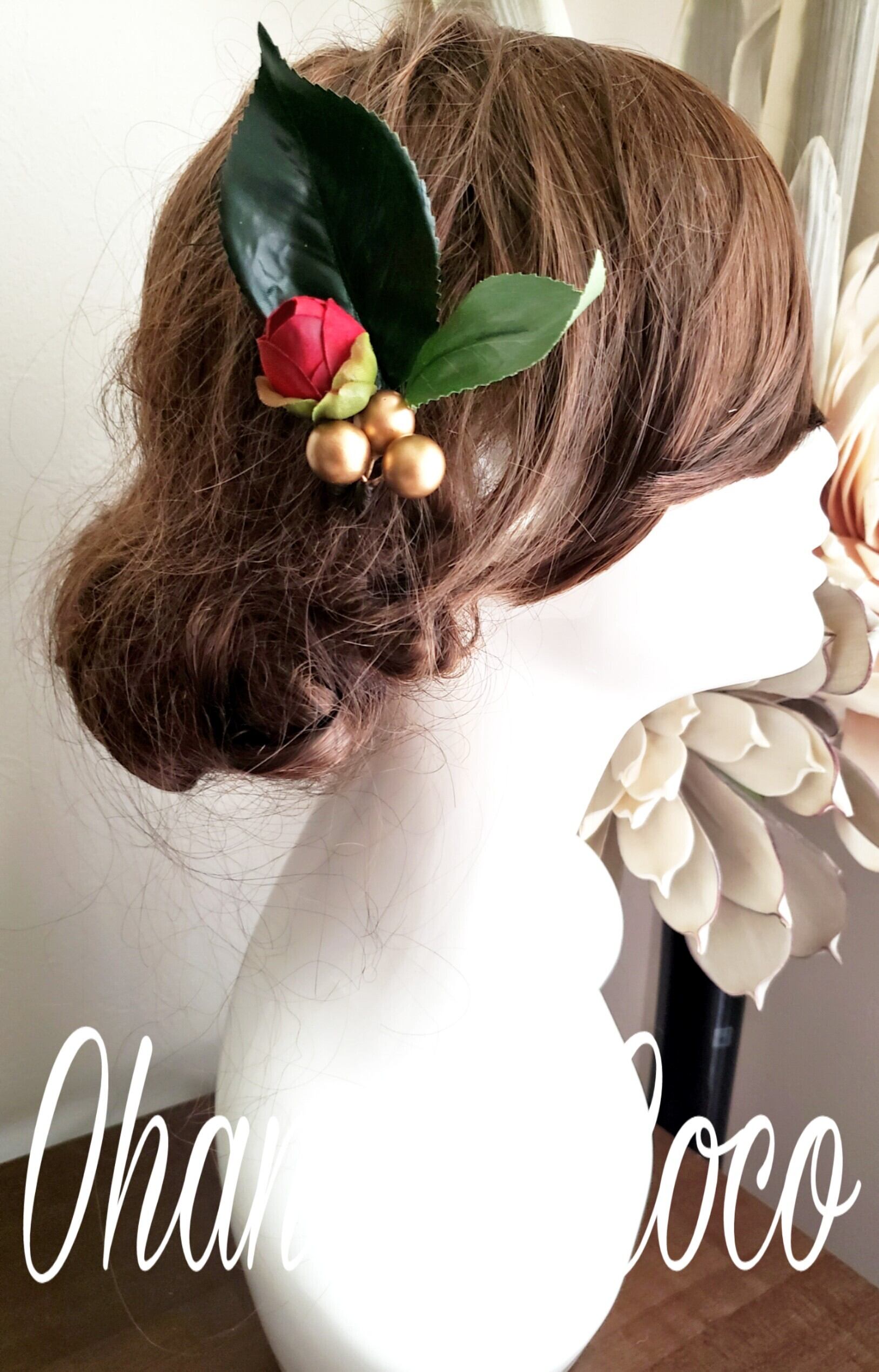 撮影角度などにより大きく見える場合もありますので実際の髪飾りの大きさは記載のサイズをご確認下さいませ。