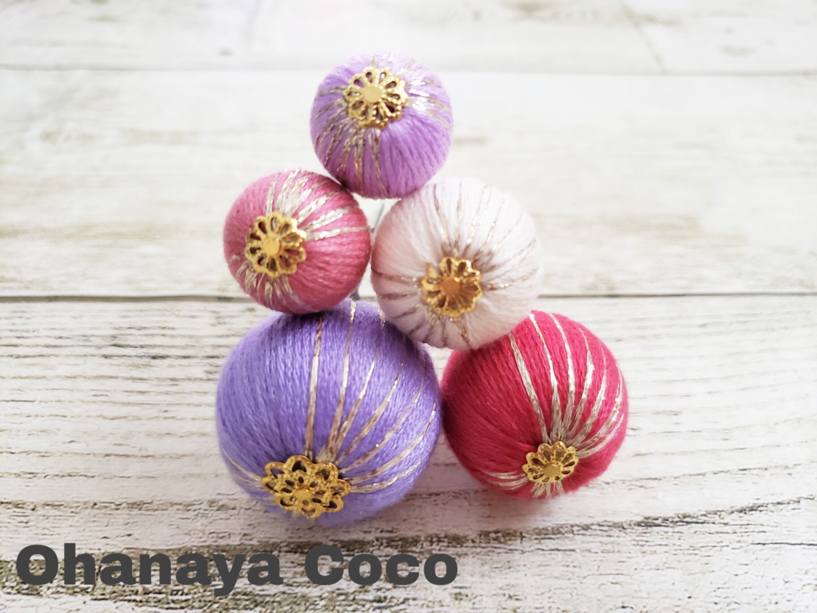 和玉ボールはカラフルな刺繍糸を丁寧に巻き付けて可愛いく仕上げました。