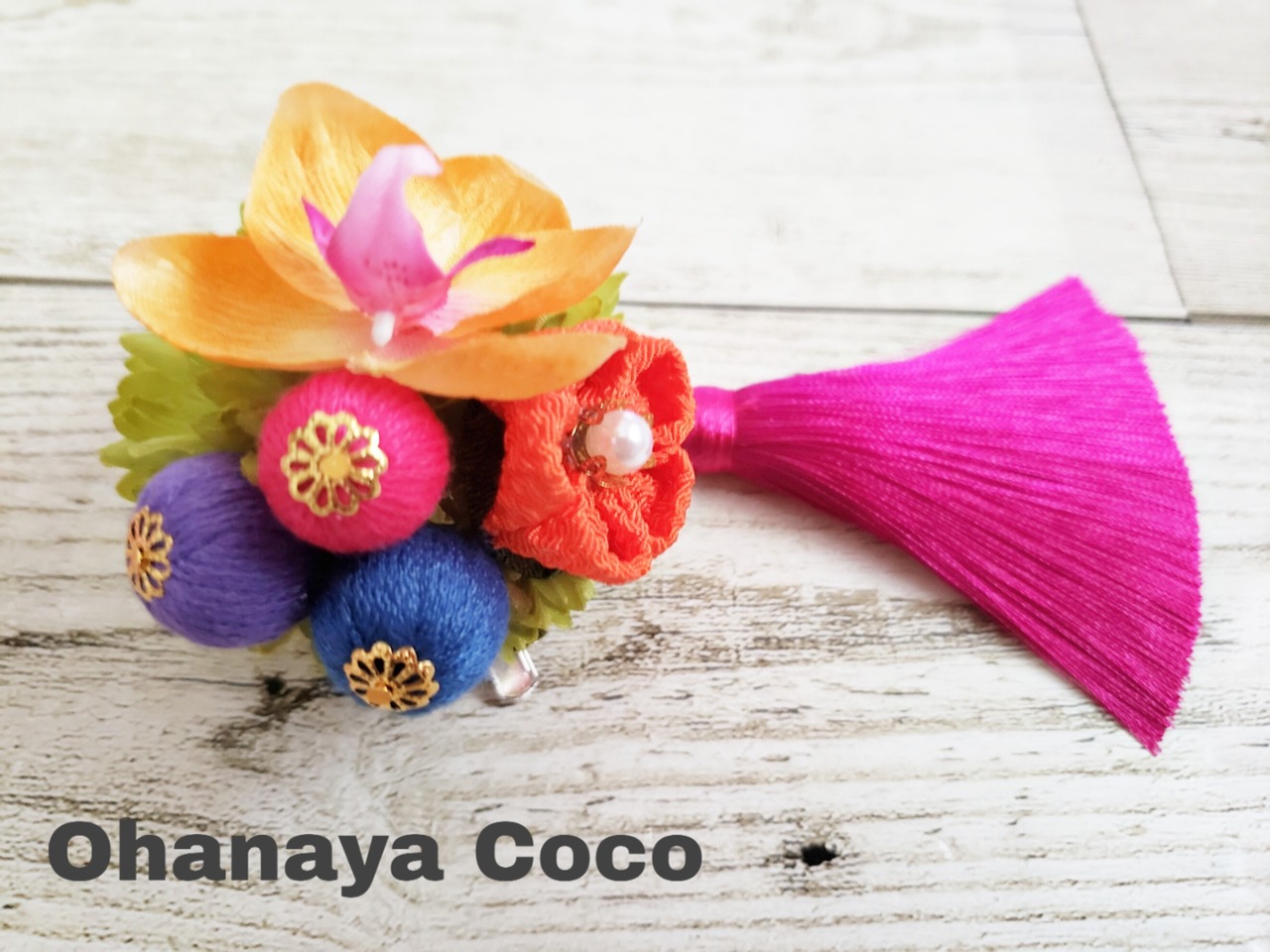 お花はショートの方でも使いやすい挟むタイプのクリップピン仕上げです。