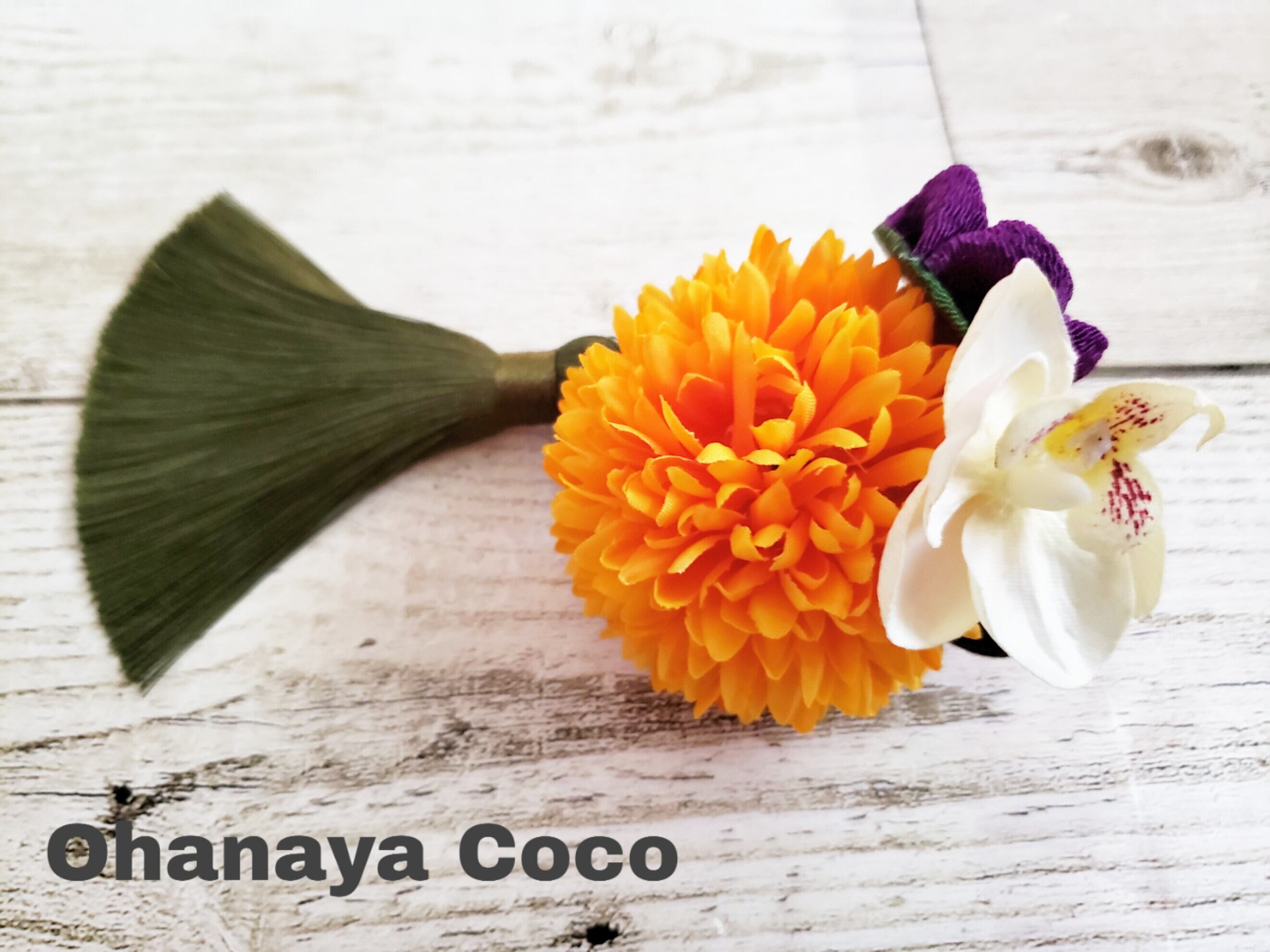 お花はショートの方でも使いやすい挟むタイプのクリップピン仕上げです。