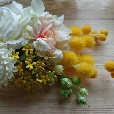 こちらの商品はミモザの春色コサージュです。