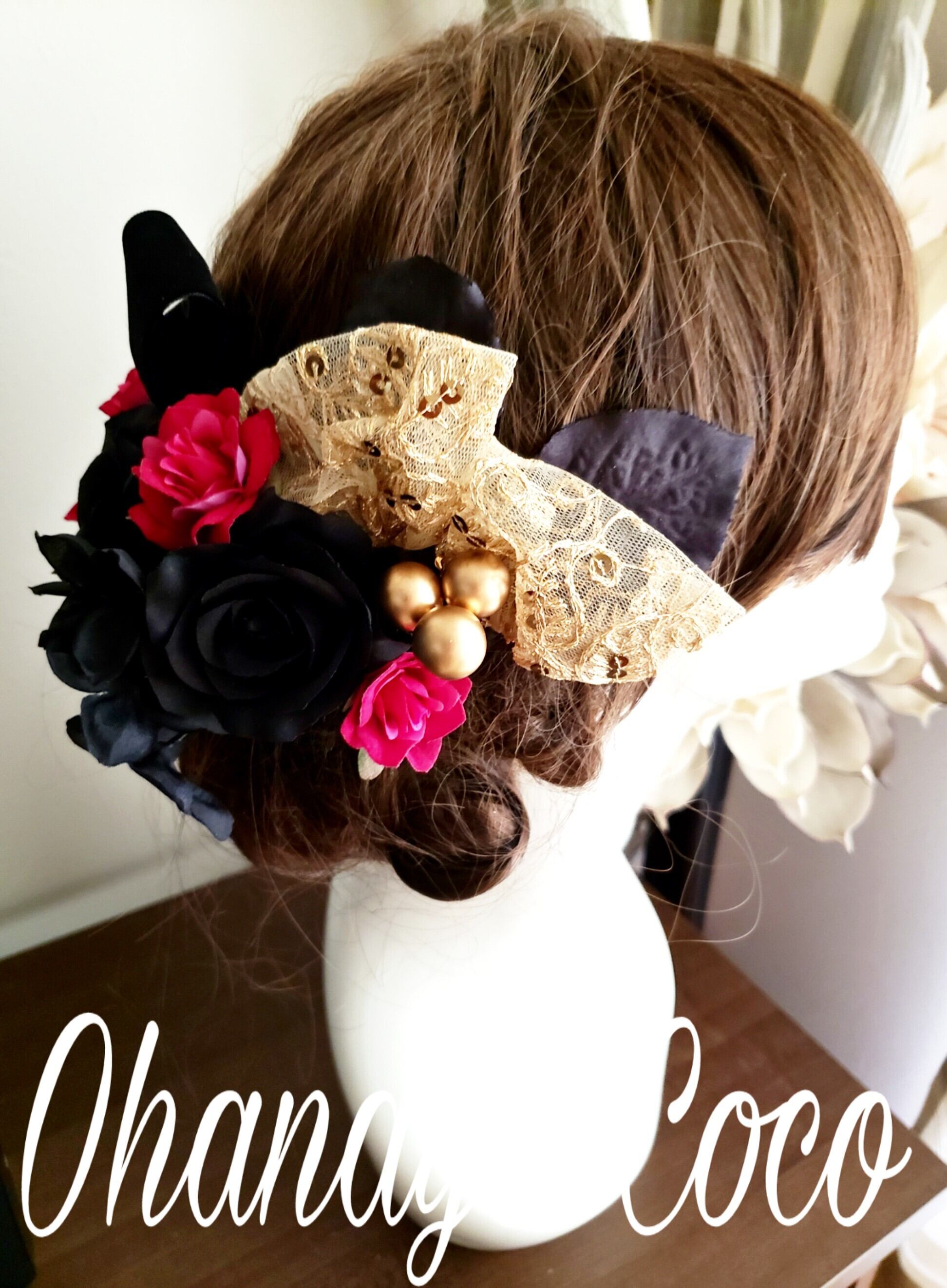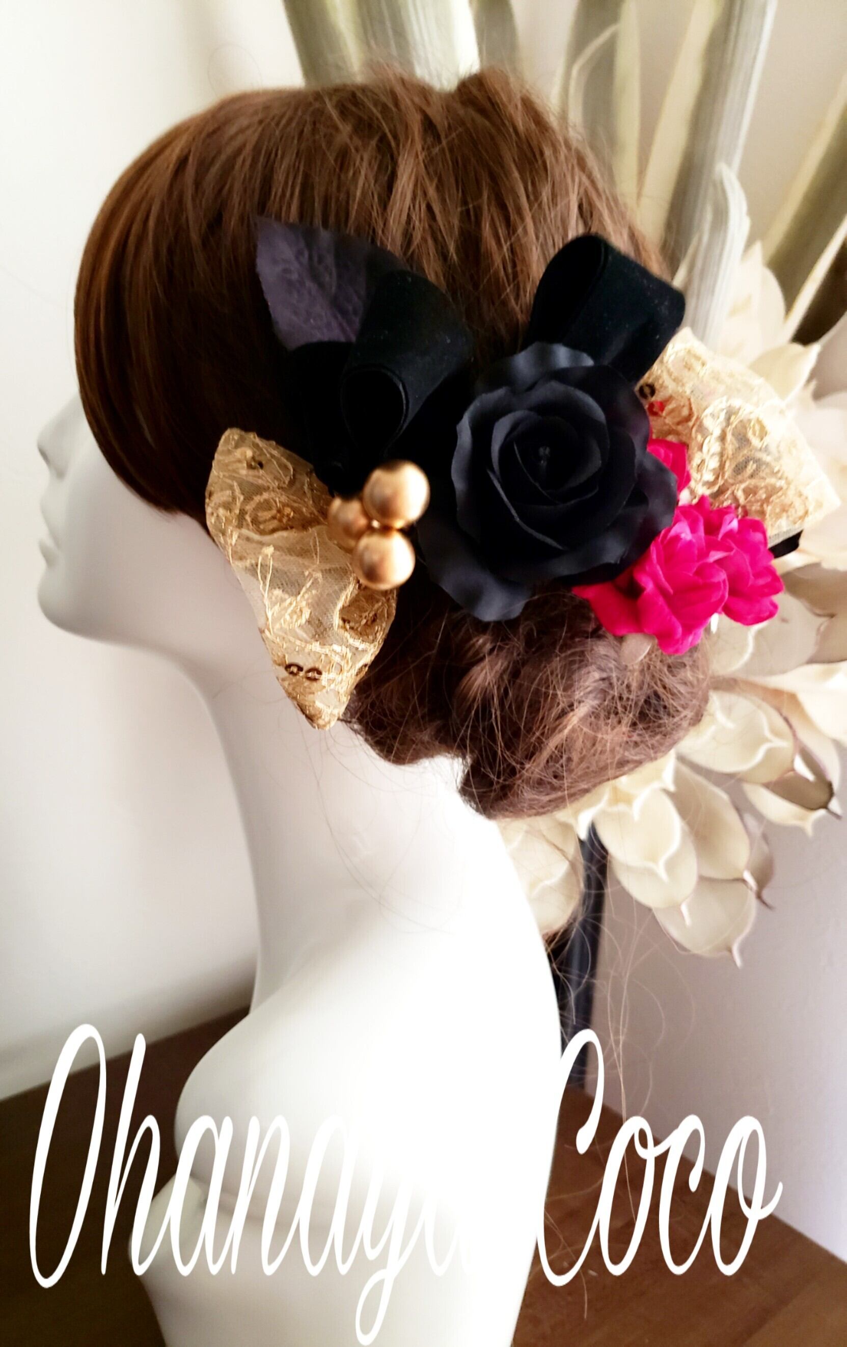専用 オーダー商品 黒とピンクの薔薇のヘッドドレス17点Set 20220108イ