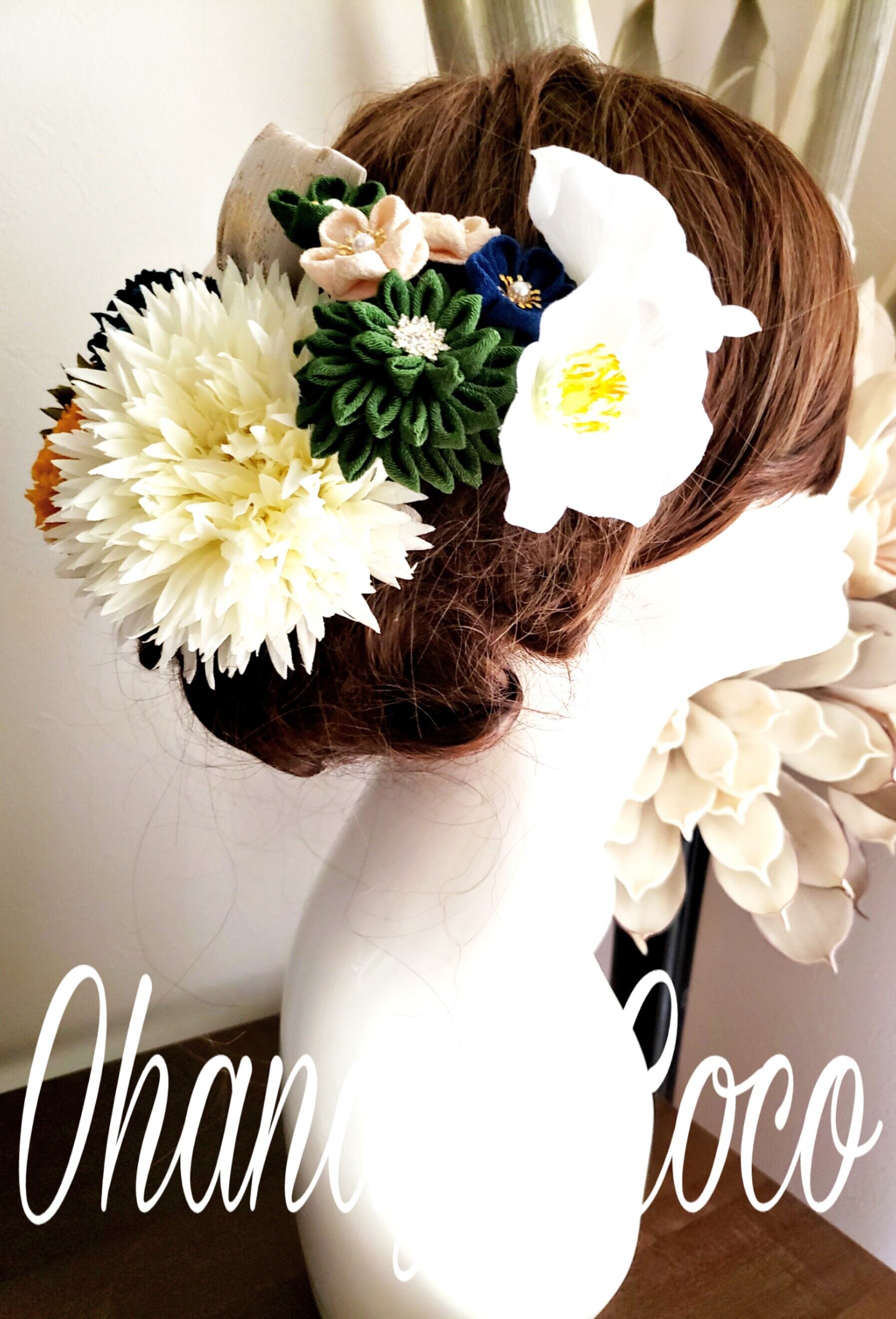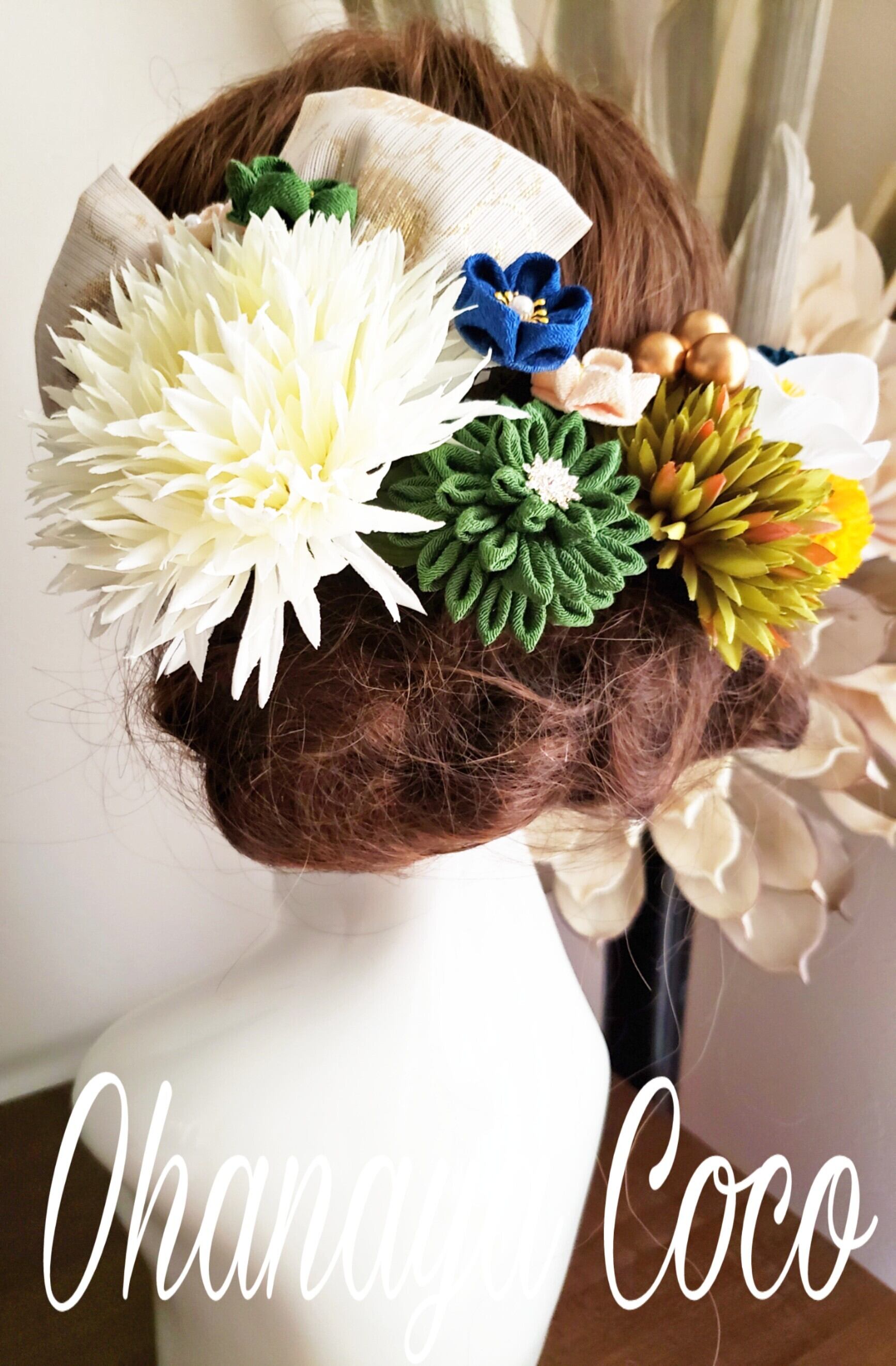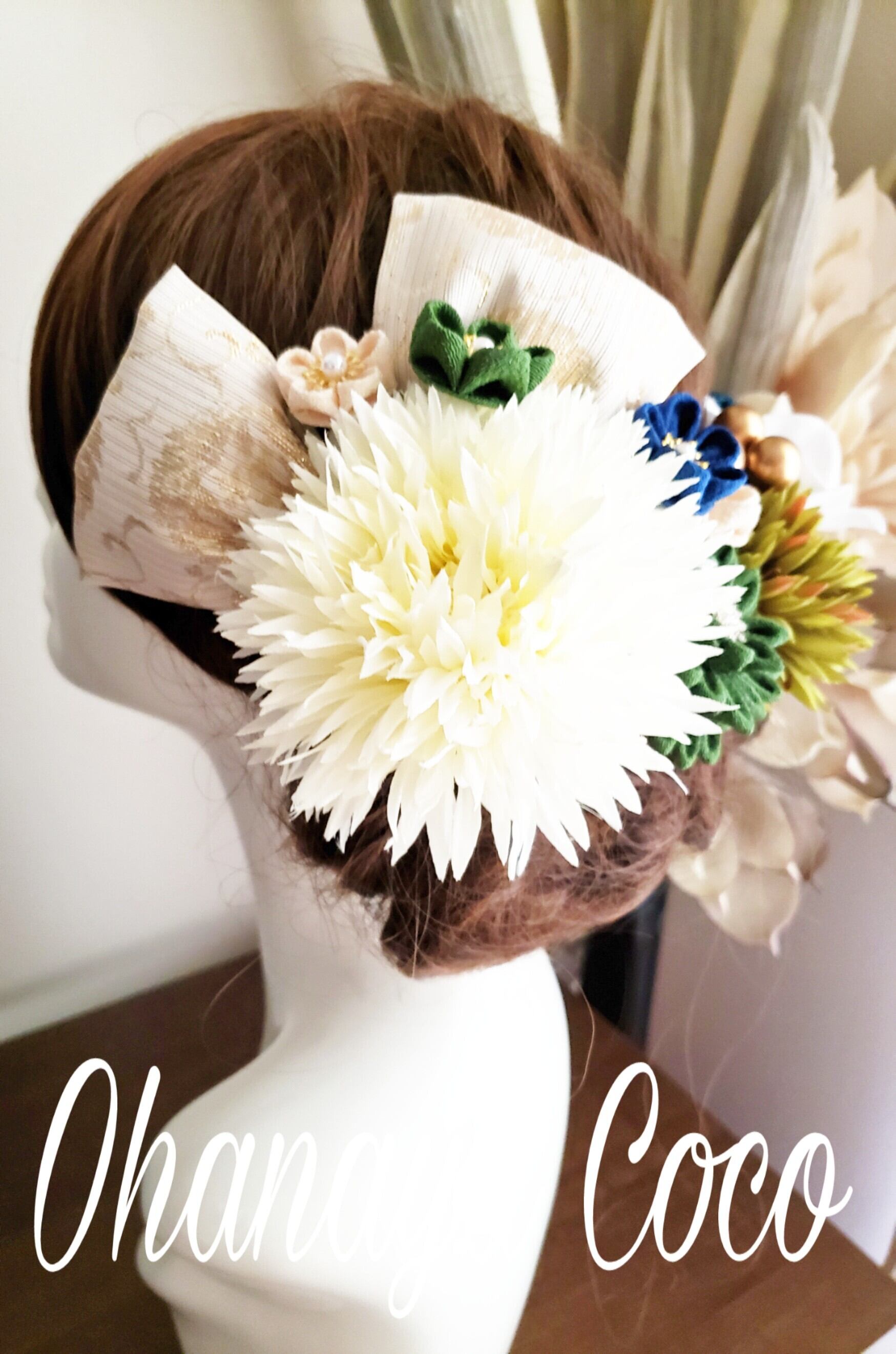#和装 #造花 #白無垢 #色打掛 #成人式 #白無垢 #成人式 #袴 #卒業式 #大正ロマン #お色直し #髪飾りオーダー #ポンポンマム #七五三 #キュート #和モダン #和風レトロ#つまみ細工