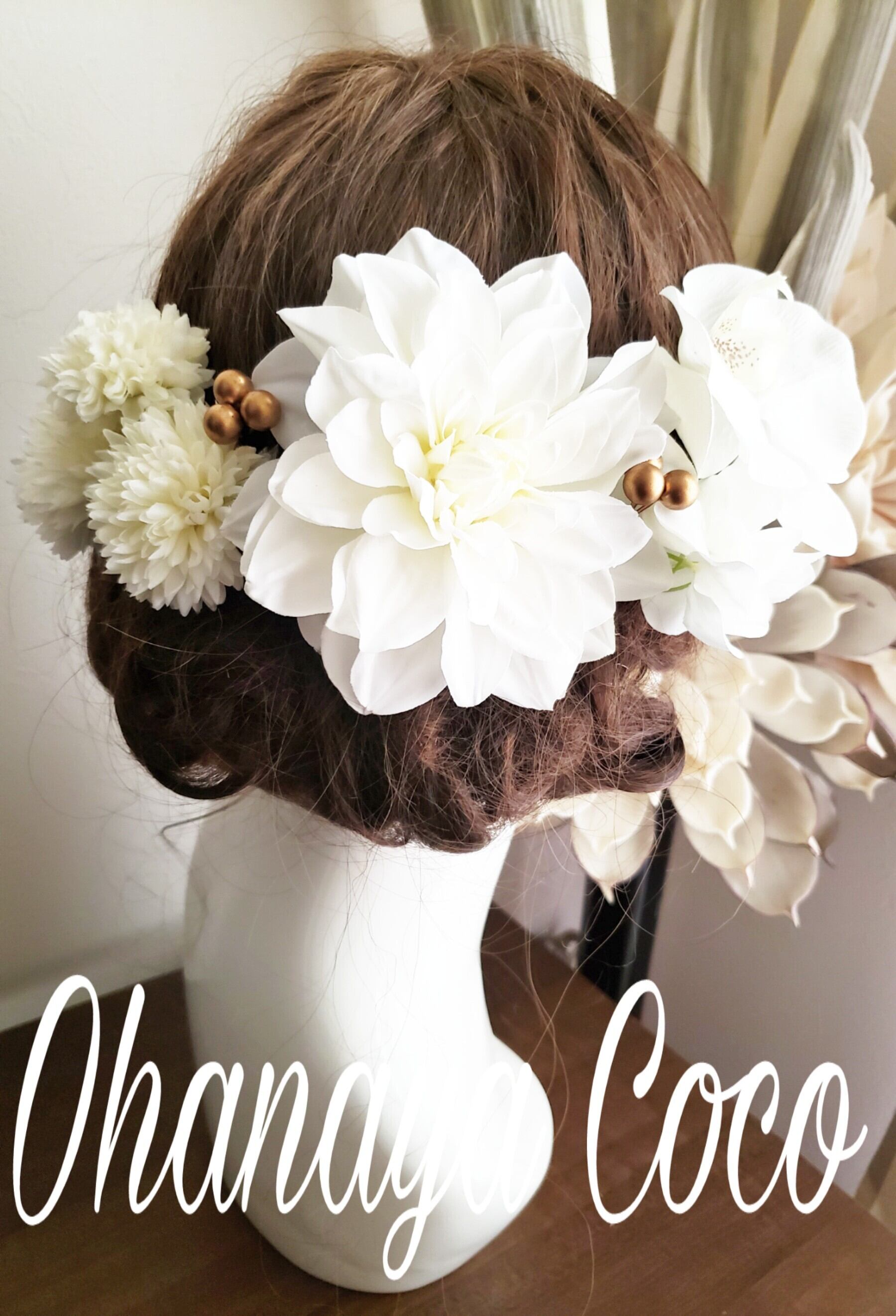 hirahira胡蝶蘭とwhite系ヘッドドレス8点Set No833