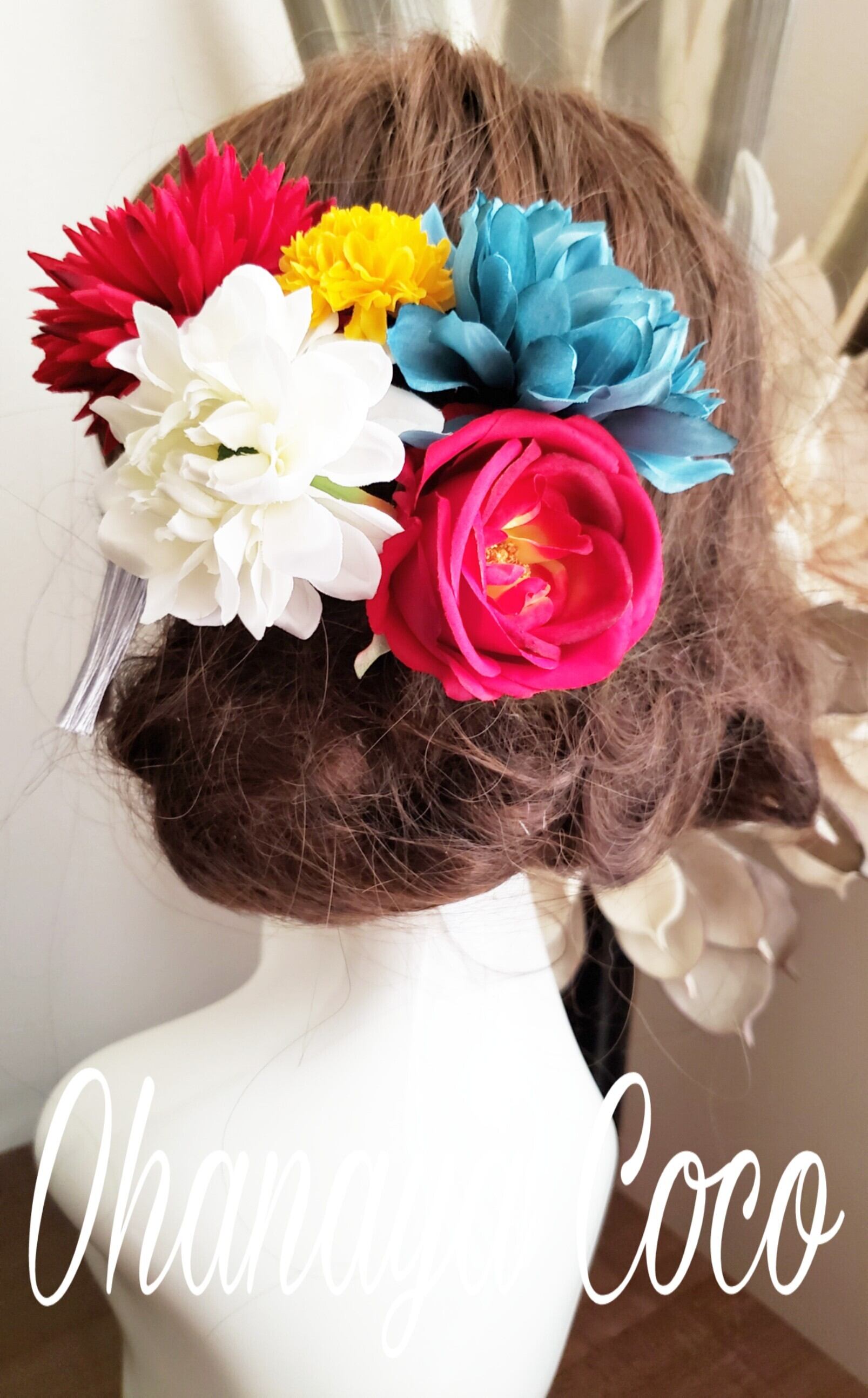 撮影角度などにより大きく見える場合もありますので実際の髪飾りの大きさは記載のサイズをご確認下さいませ。