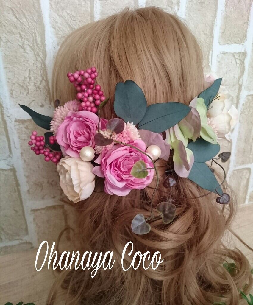 こちらの商品はアンティーク風ローズと蔦グリーンの髪飾り26点set です。。