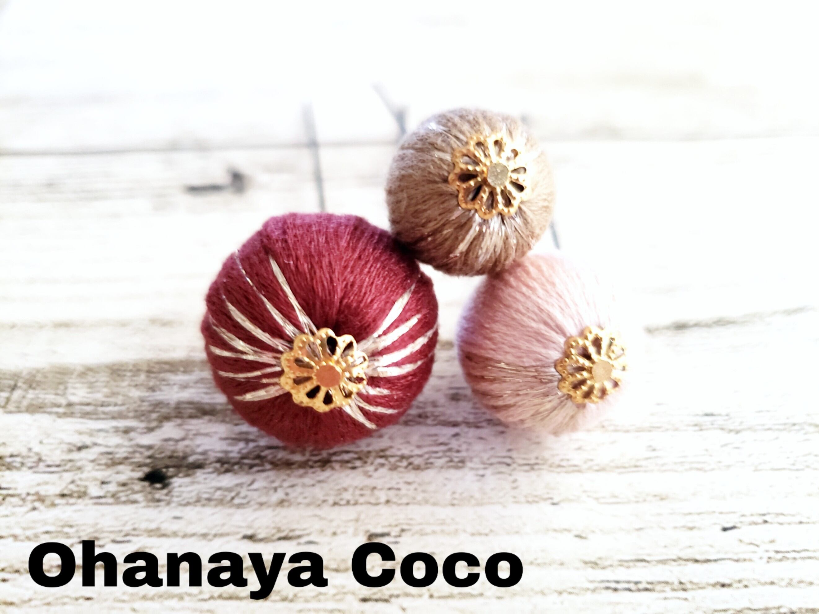 和玉ボールはカラフルな刺繍糸を丁寧に巻き付けて可愛いく仕上げました。