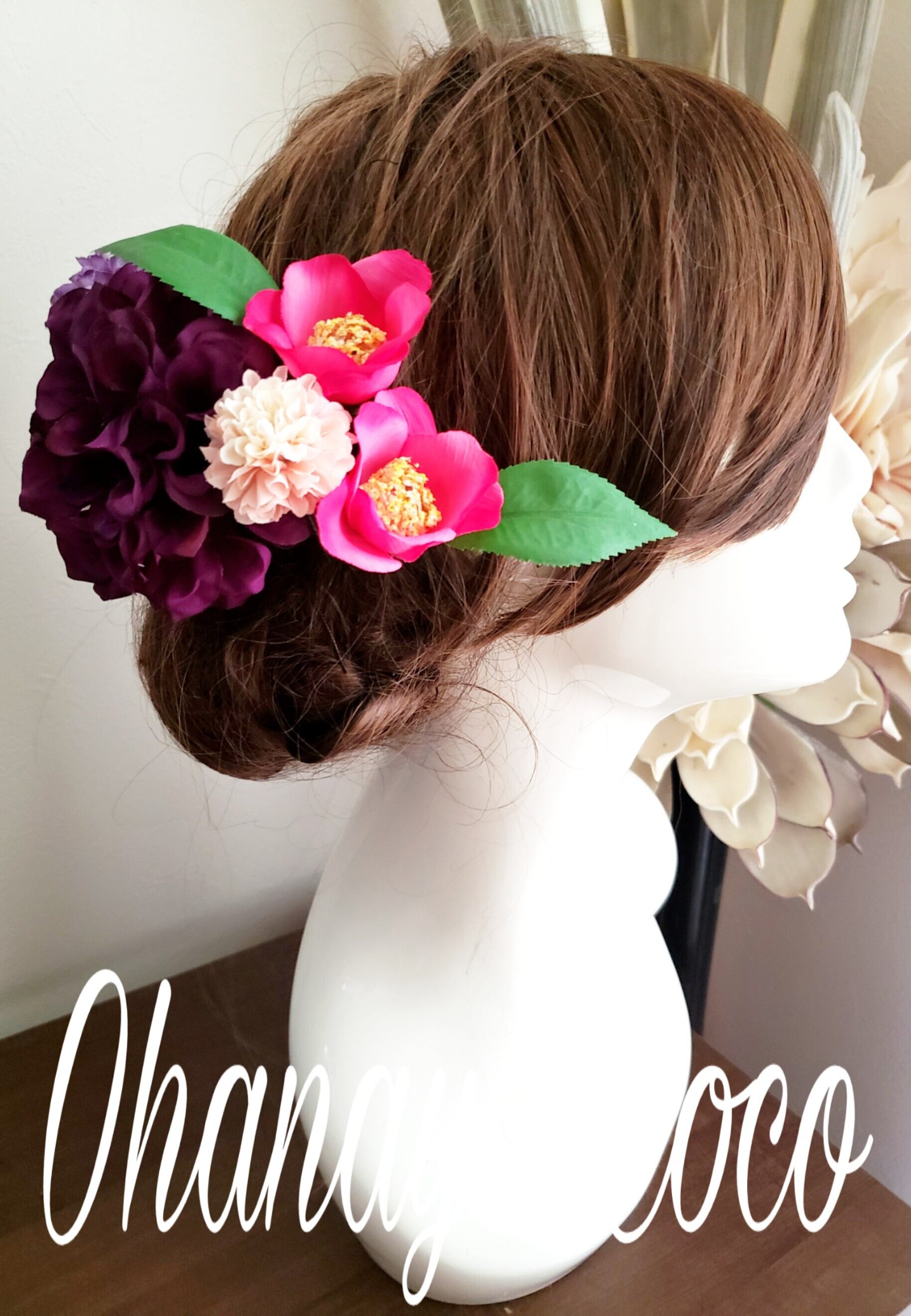 撮影角度などにより大きく見える場合もありますので実際の髪飾りの大きさは記載のサイズをご確認下さいませ