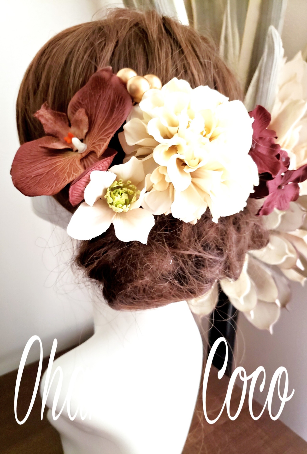 こちらの商品はアンティーク風w胡蝶蘭とダリアの髪飾り6点Setです。