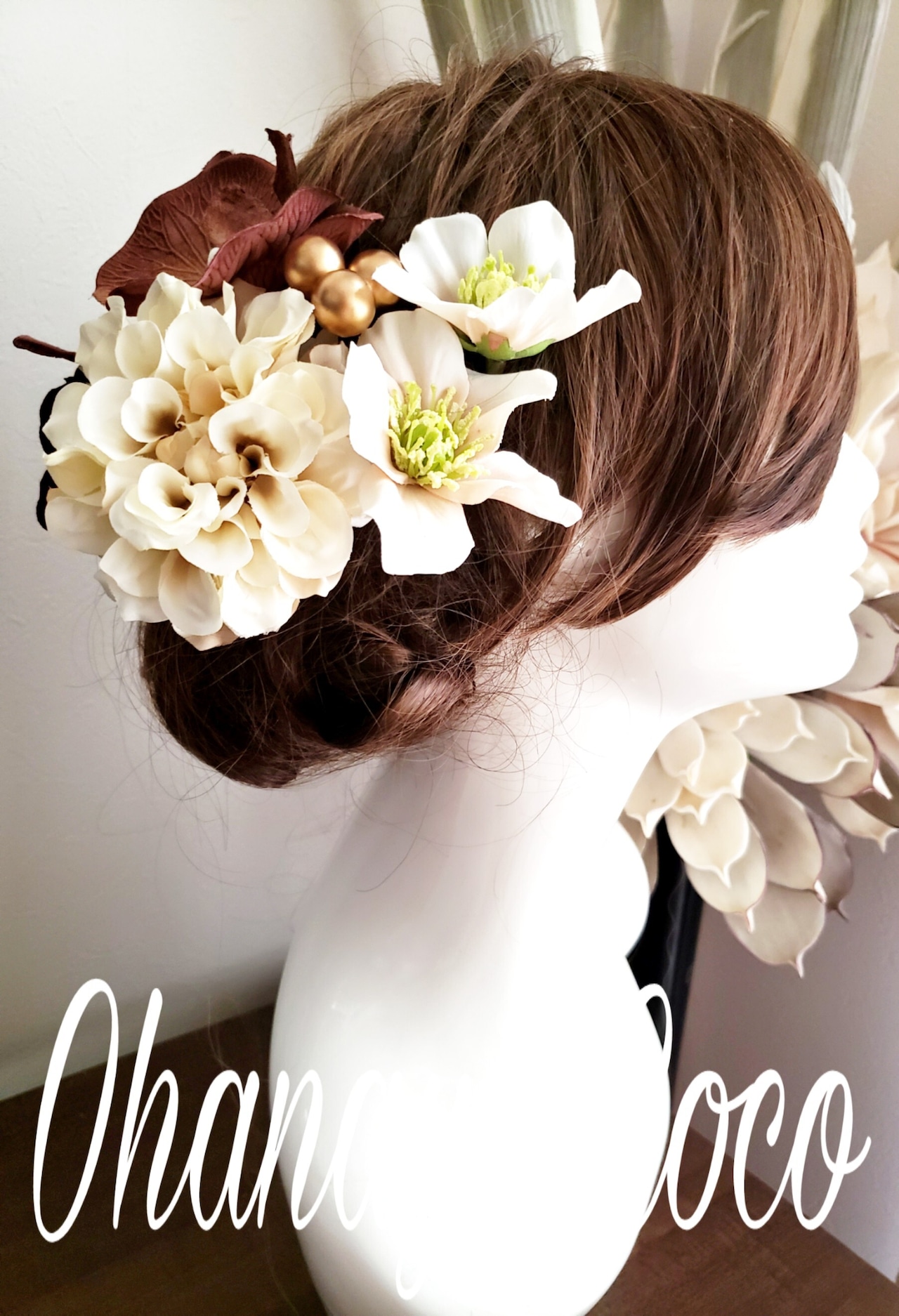 撮影角度などにより大きく見える場合もありますので実際の髪飾りの大きさは記載のサイズをご確認下さいませ