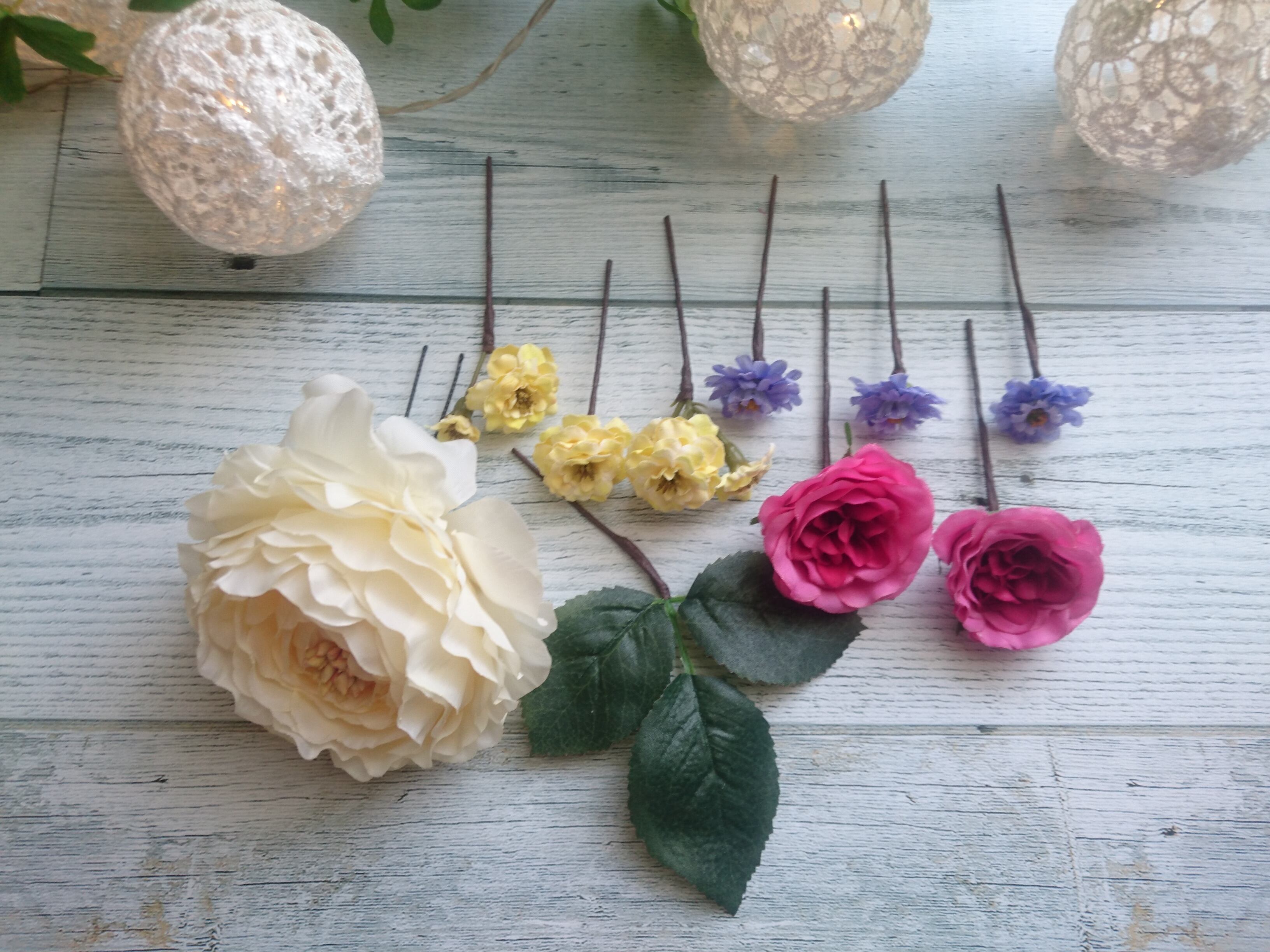 お花ひとつひとつにIピンが付いていますので様々な配置でご使用いただけます。
