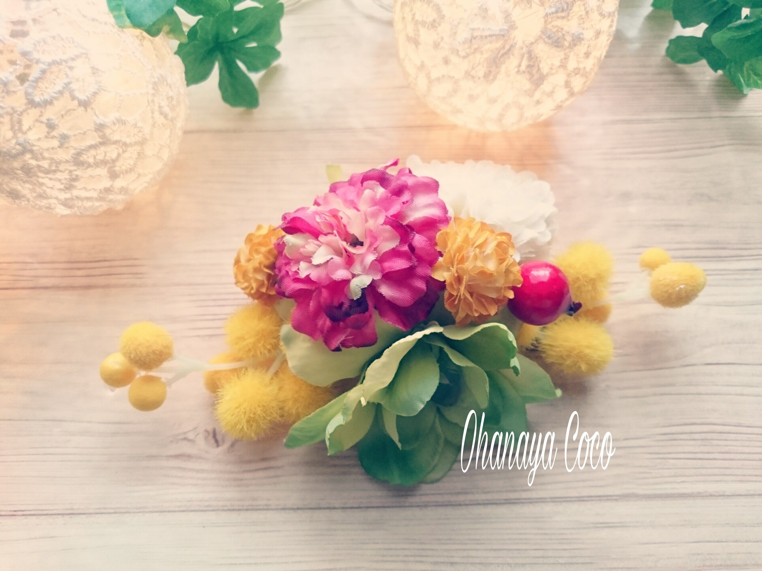 アーティフィシャルフラワーをひとつひとつ丁寧に加工し、専用の3wayタイプヘアクリップでfunwari仕上げたフラワーアクセサリーです。