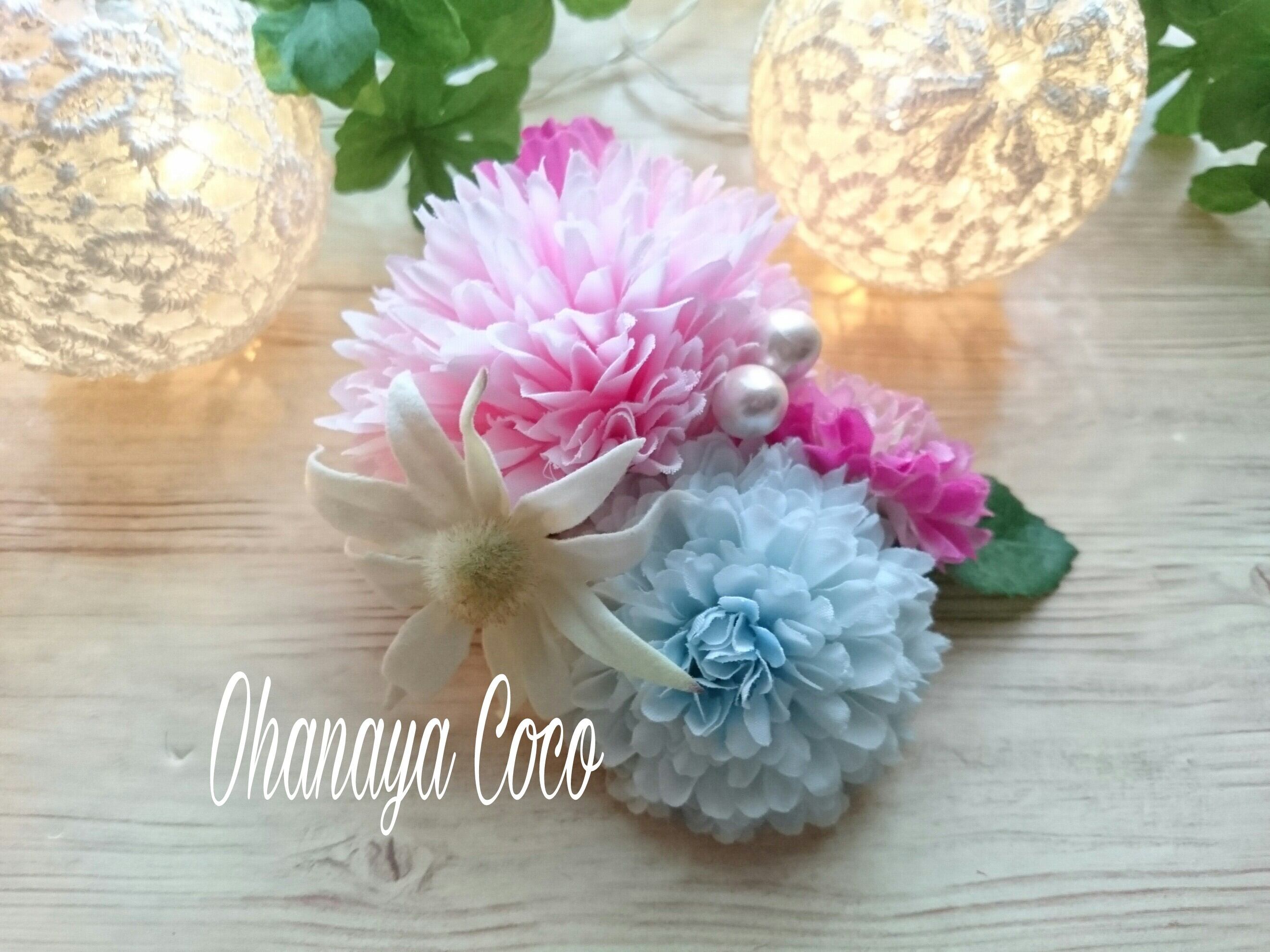 アーティフィシャルフラワーをひとつひとつ丁寧に加工し、専用の3wayタイプヘアクリップでfunwari仕上げたフラワーアクセサリーです。