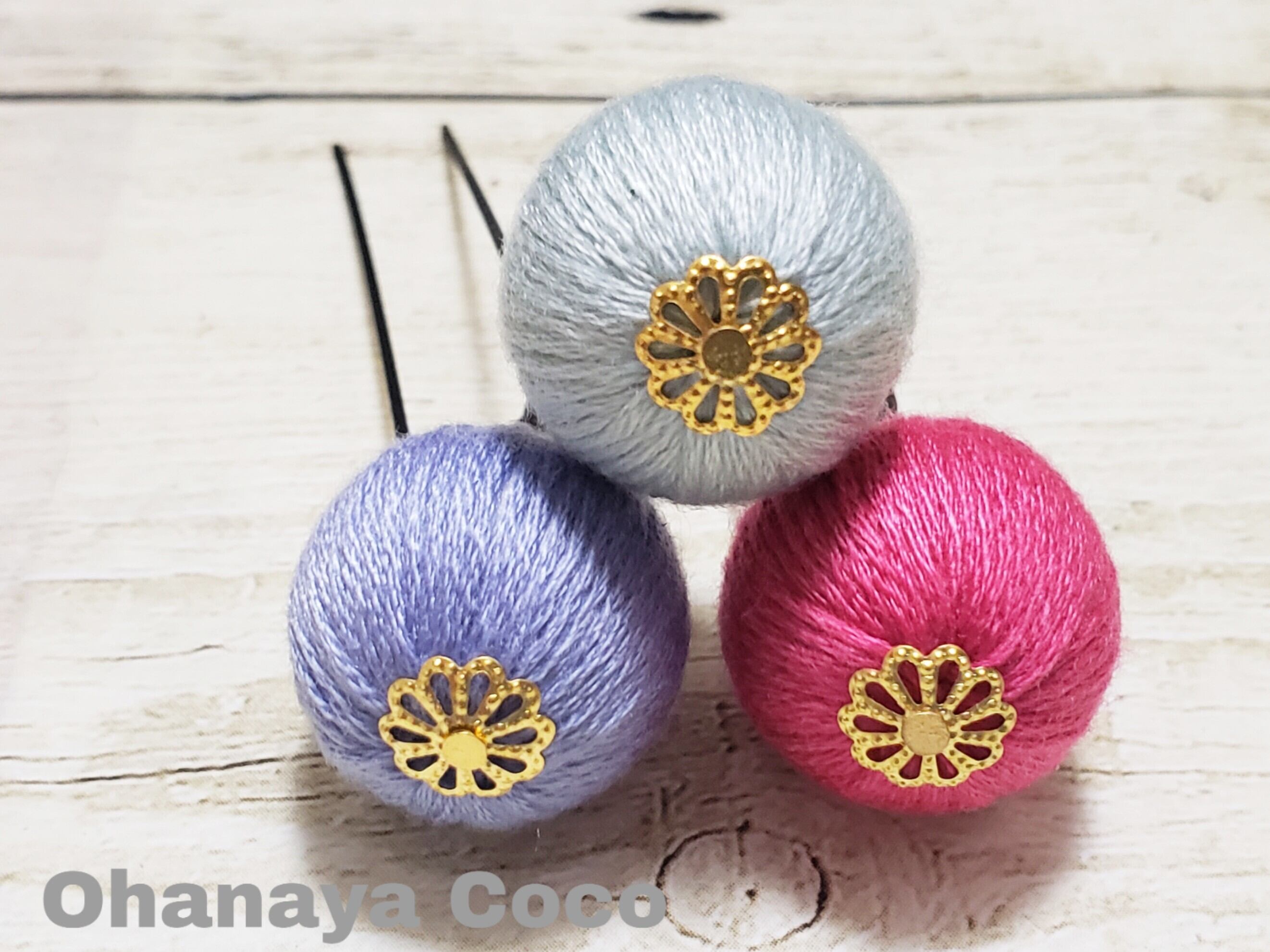 和玉ボール3本Set (2.2cm)Fタイプ⑥ 髪飾り 成人式 袴 振袖 七五三