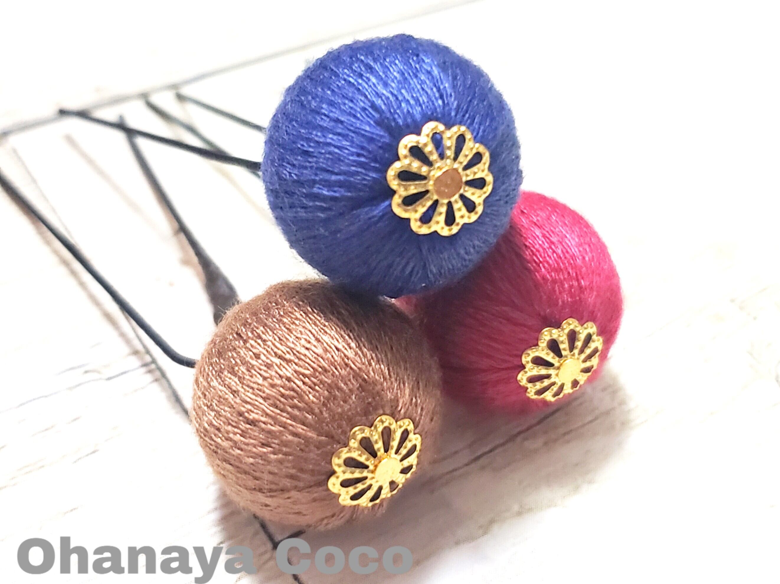 和玉ボールはカラフルな刺繍糸を丁寧に巻き付けて可愛いく仕上げました。