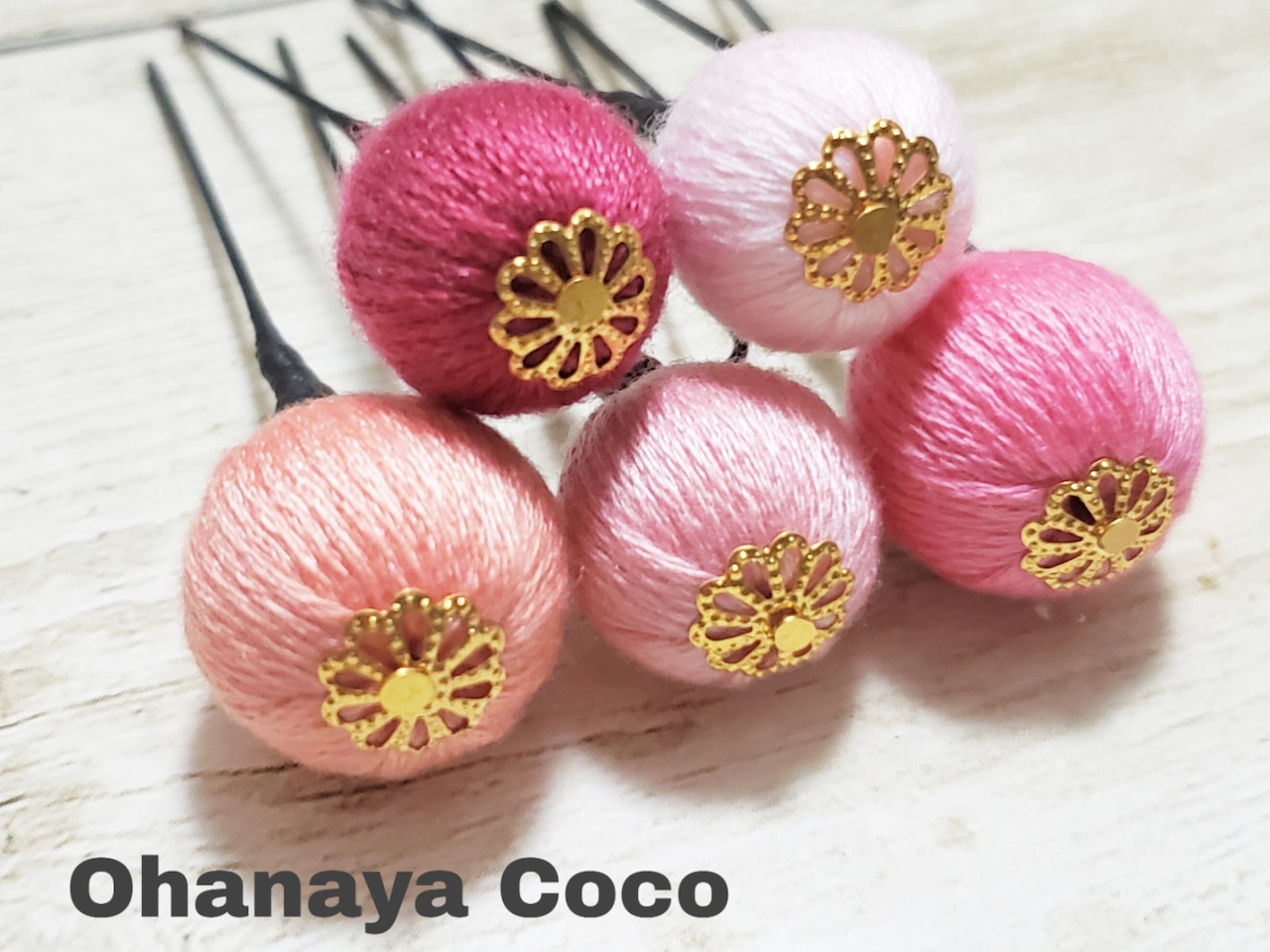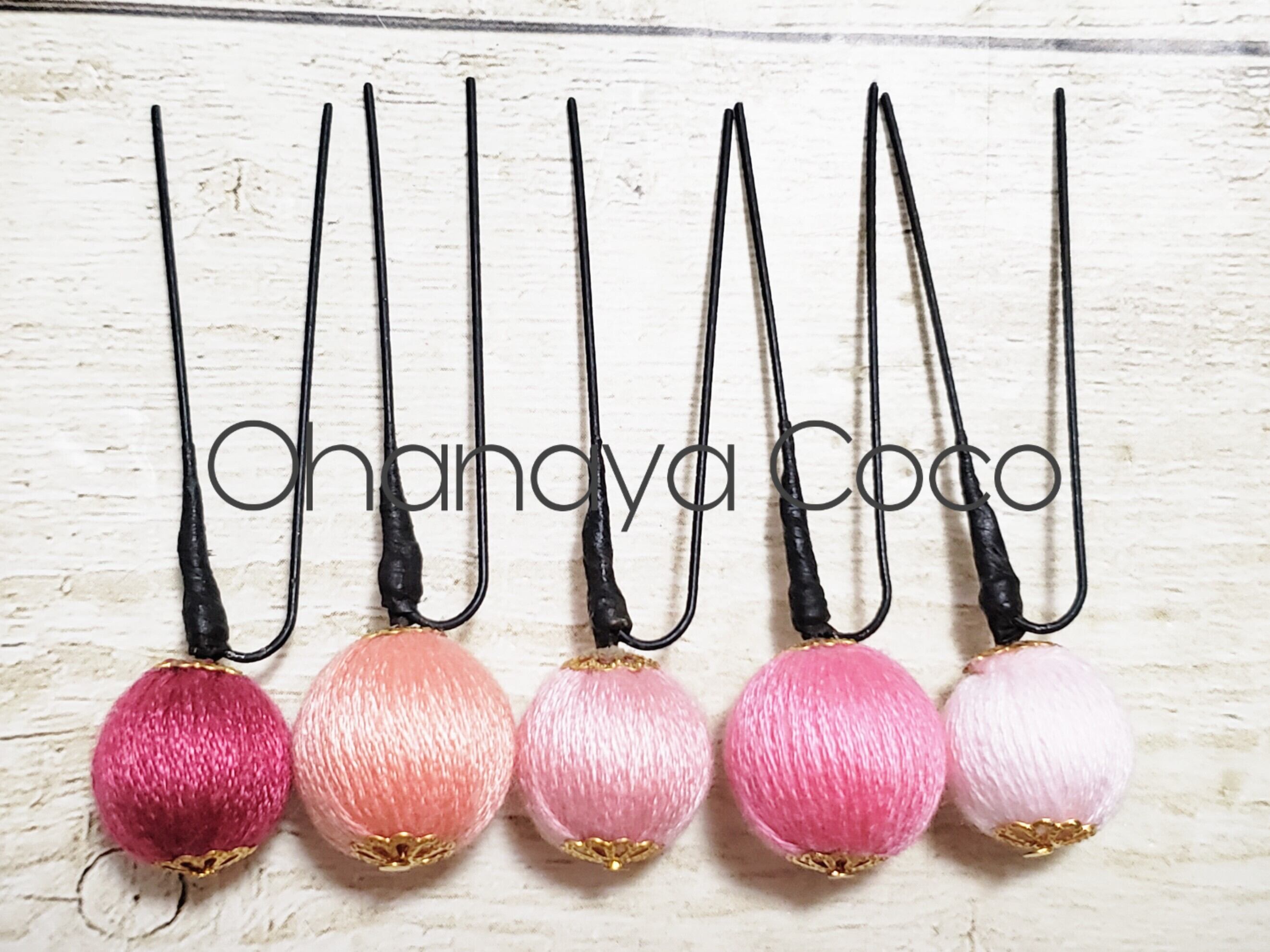 和玉ボールはカラフルな刺繍糸を丁寧に巻き付けて可愛いく仕上げました。