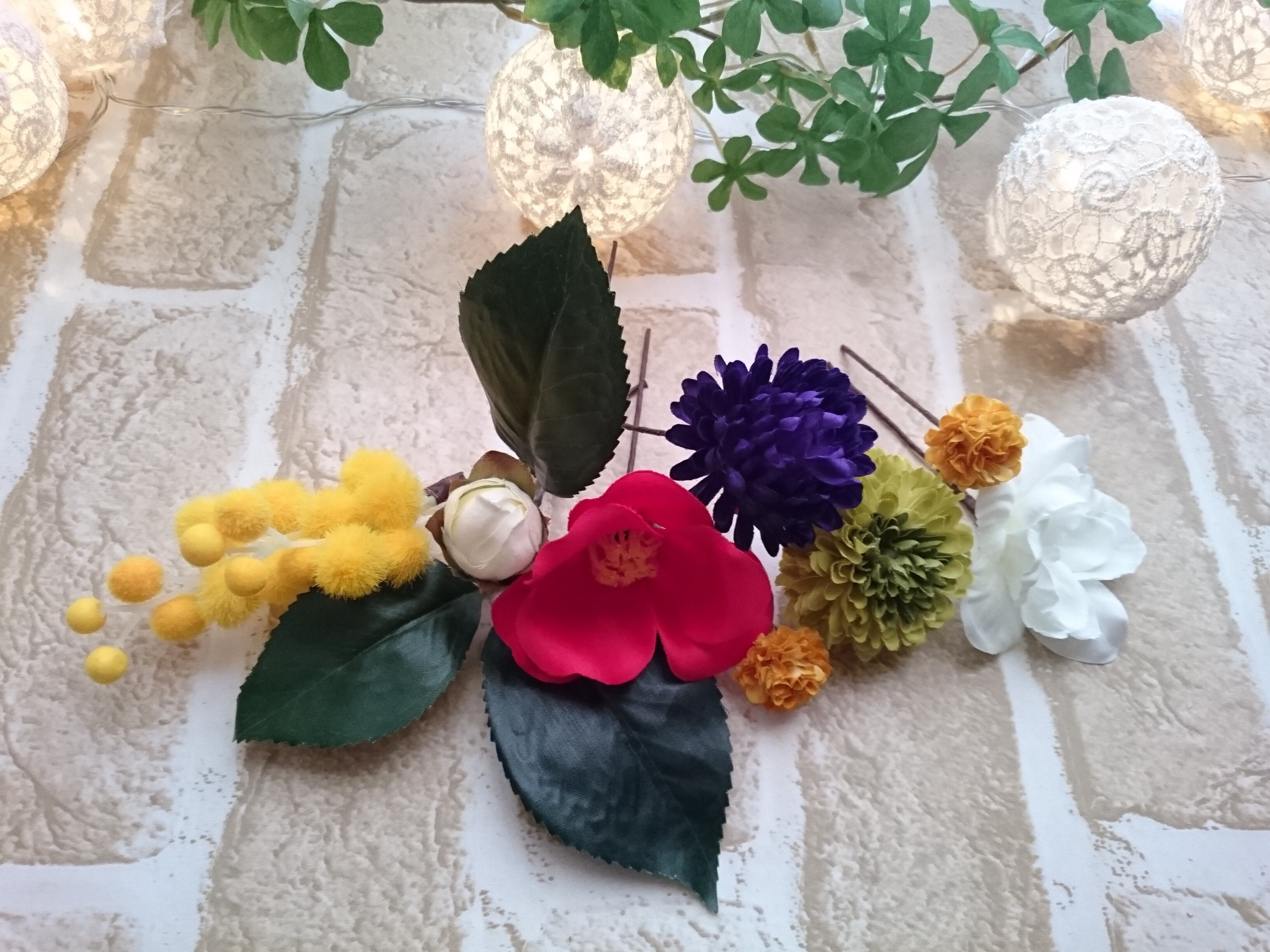 和風モダン 椿とミモザの髪飾り8点Set No160